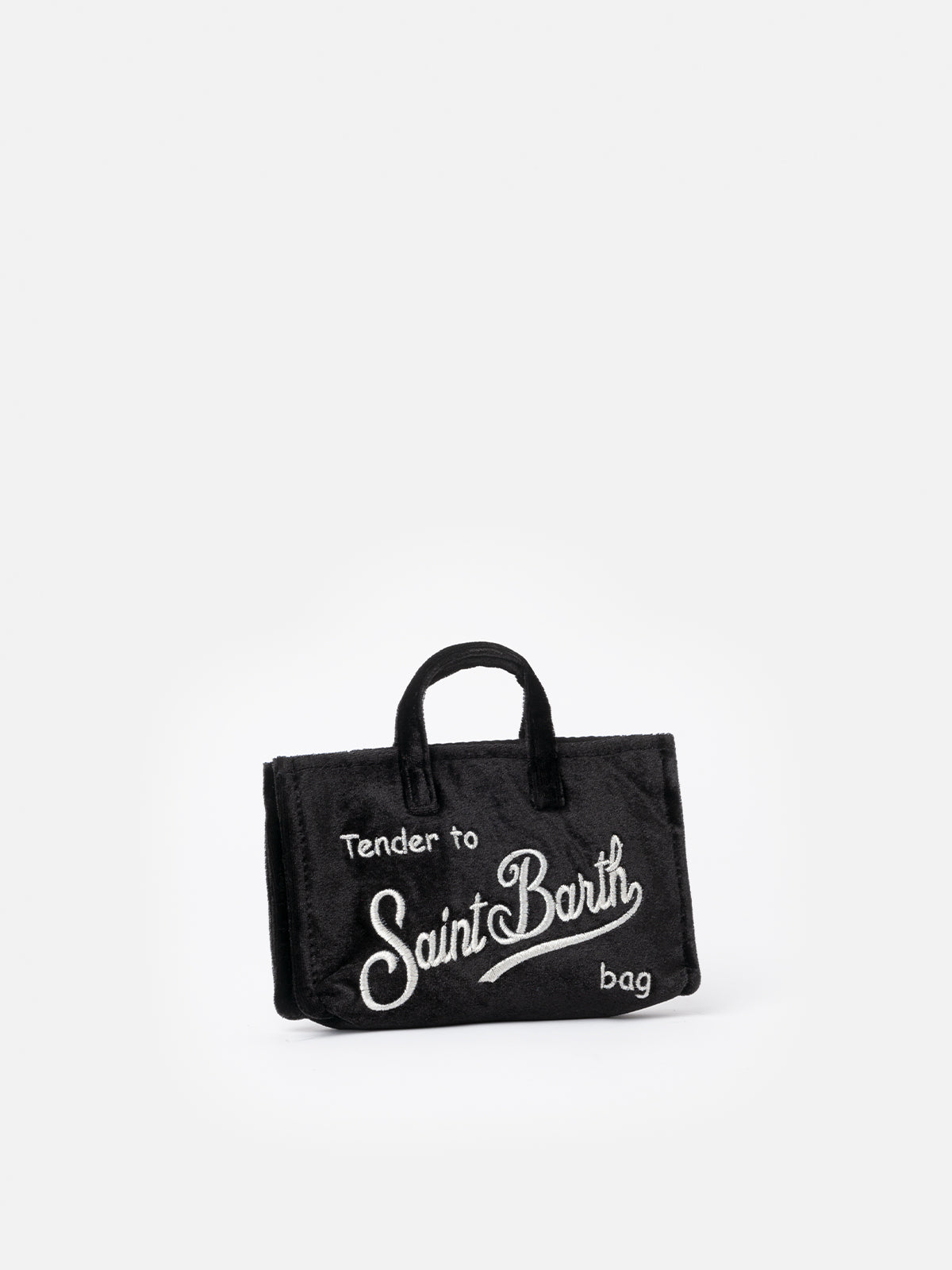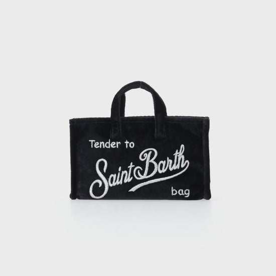 Schwarze Telefontasche aus Samt mit Saint Barth-Logostickerei
