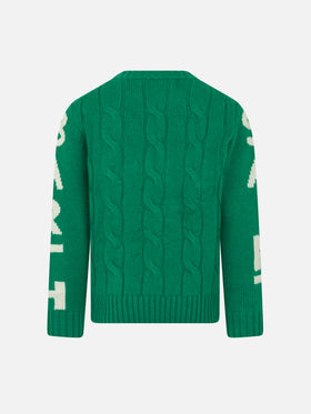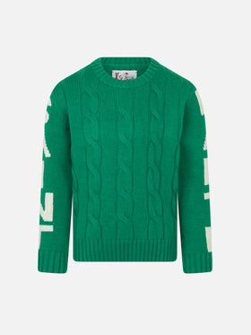 Grüner Zopfmusterpullover für Jungen Bergen Jr mit Saint Barth Jacquard