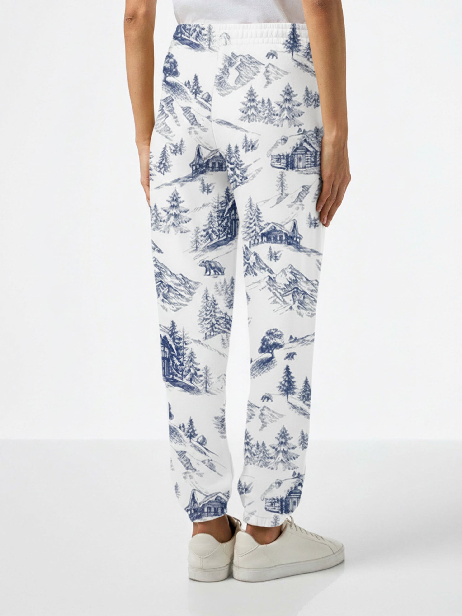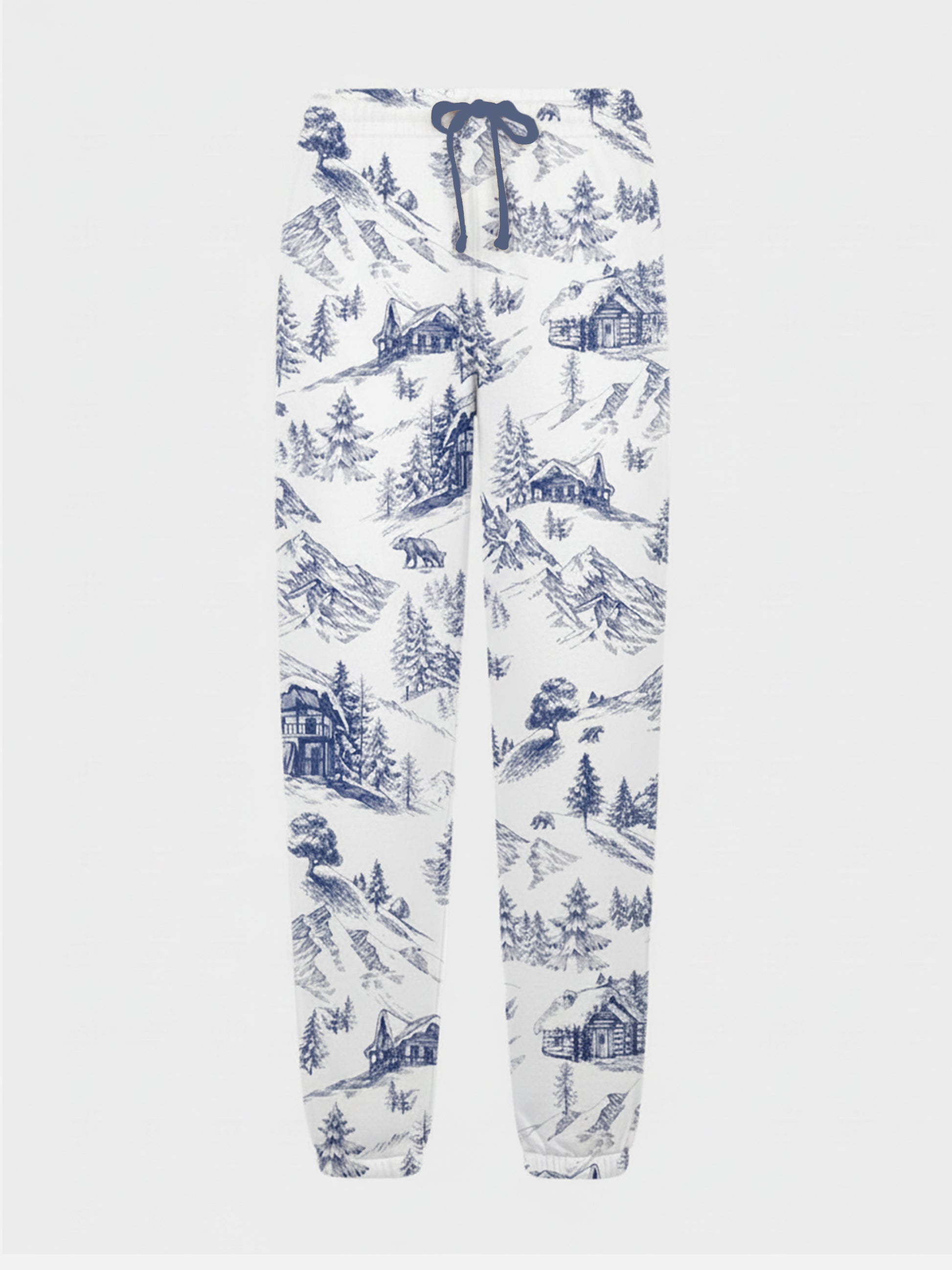 Odalys-Hose aus Baumwollfleece mit Toile-de-Jouy-Print