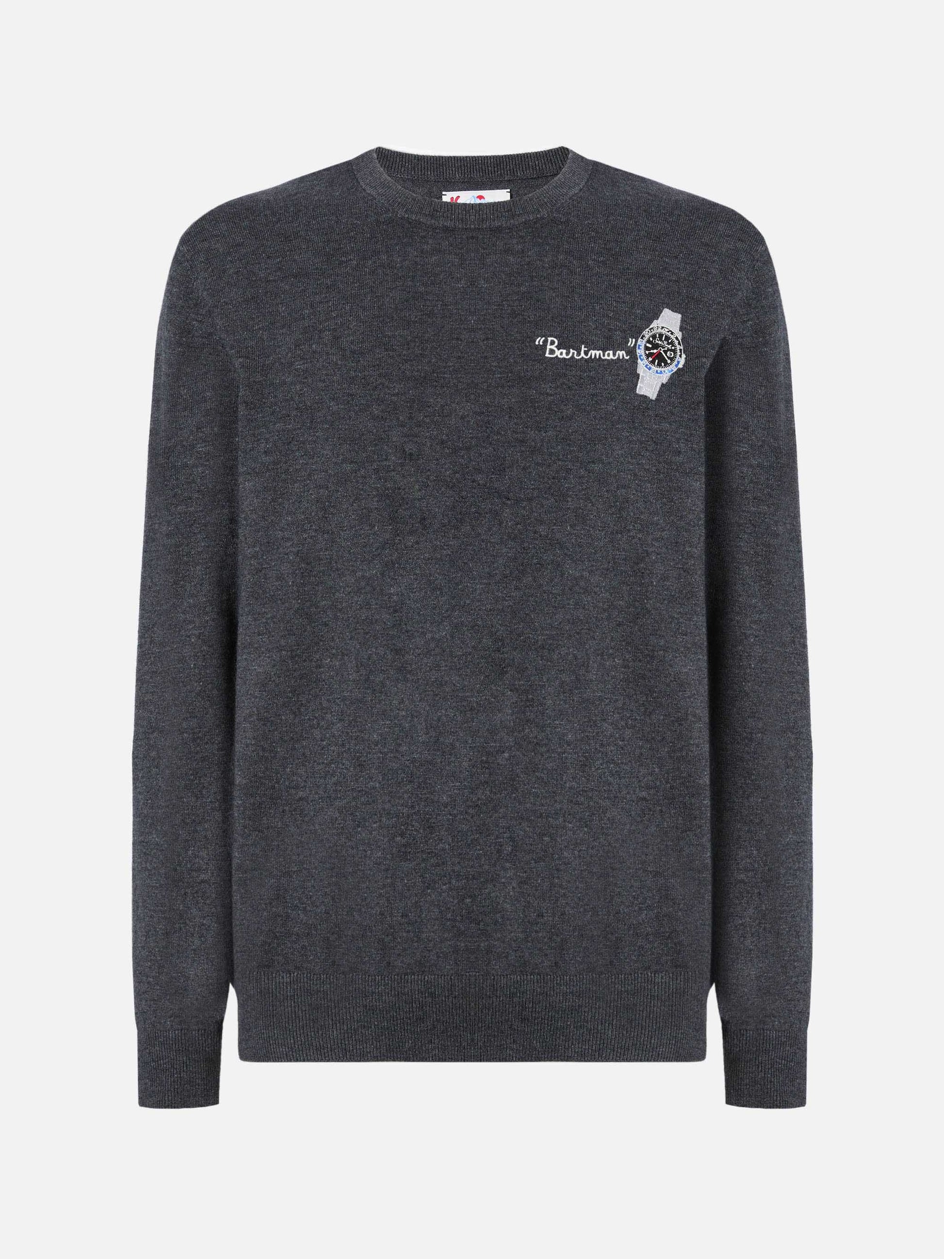 Rundhalspullover Heron Light mit Bartman-Stickerei