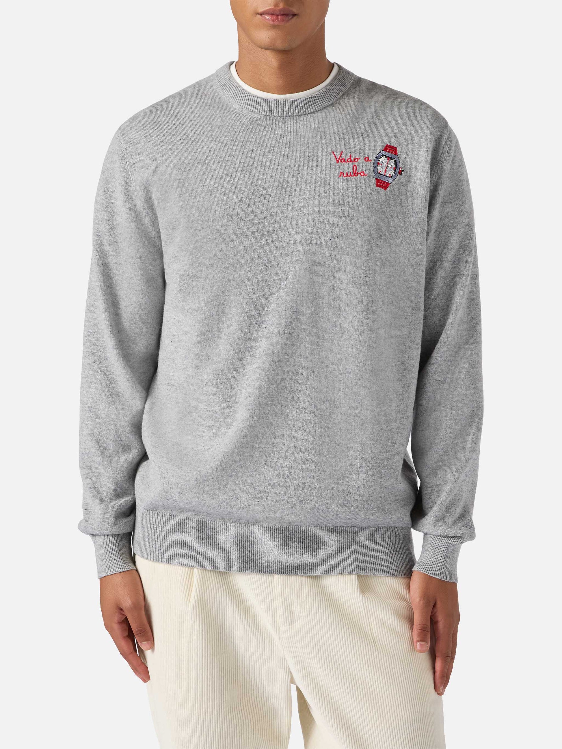 Rundhalspullover Heron Light mit Vado a ruba Stickerei