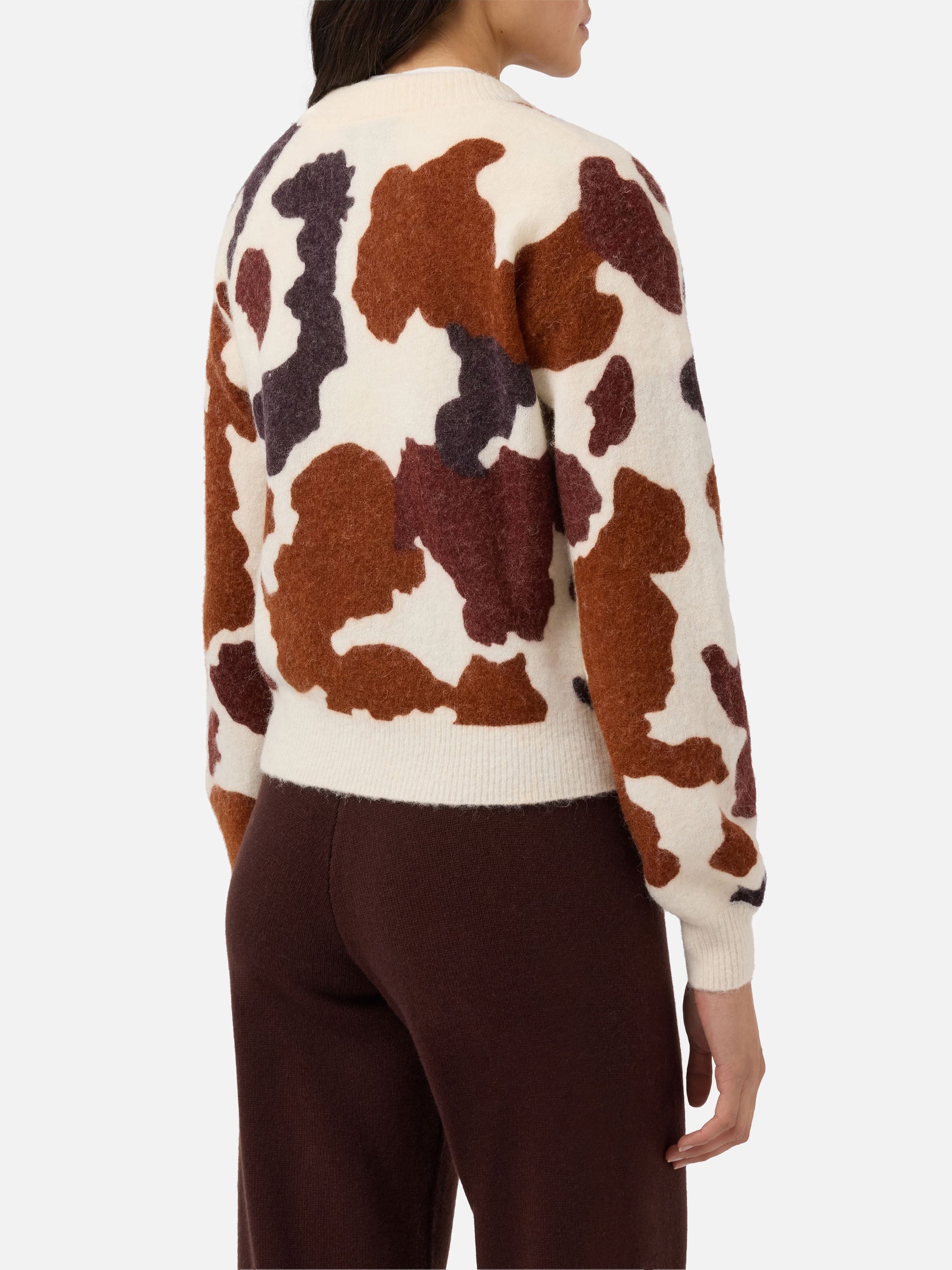Danya Stretch-Pullover aus Merinowolle und Alpaka-Mischgewebe mit Kuhmuster