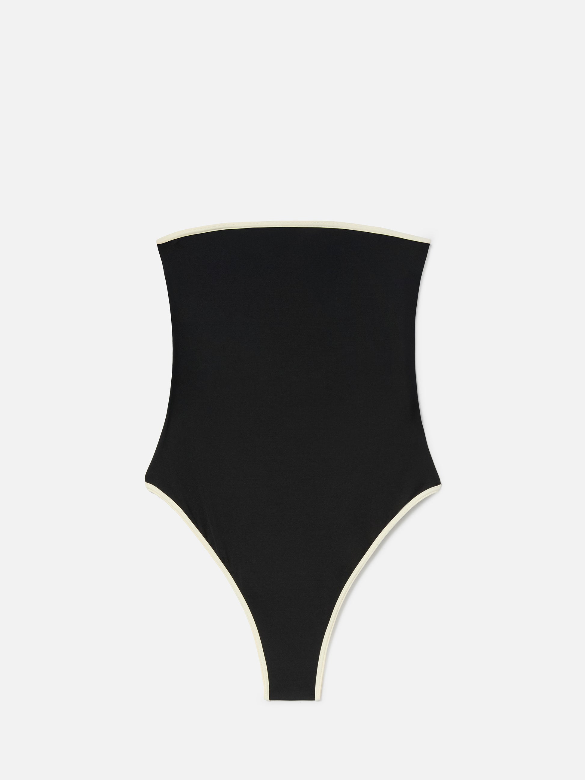 Khyra String bandeau black one-piece swimsuit with contrast details