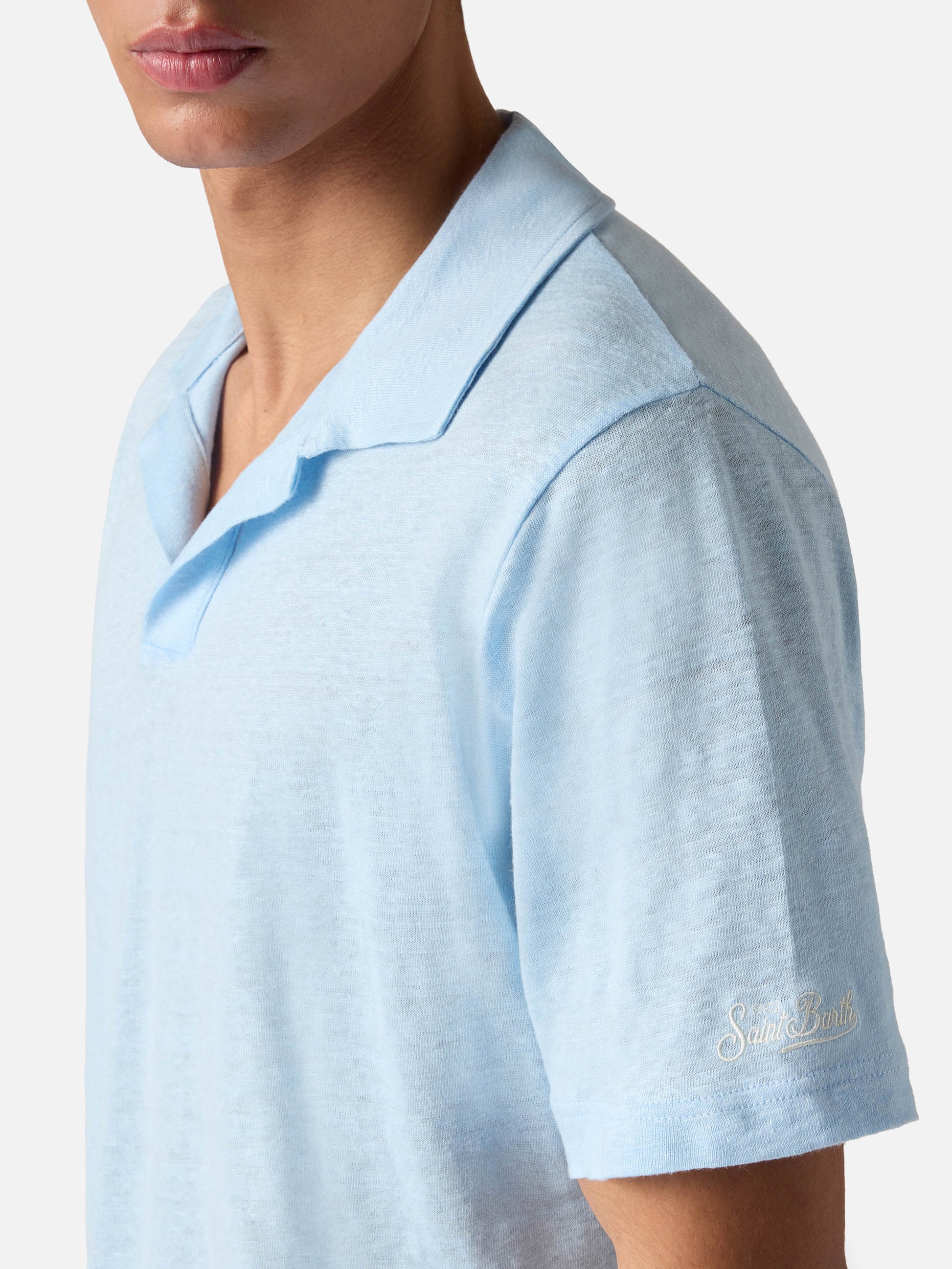 Light blue Fraser polo in pure linen solid color