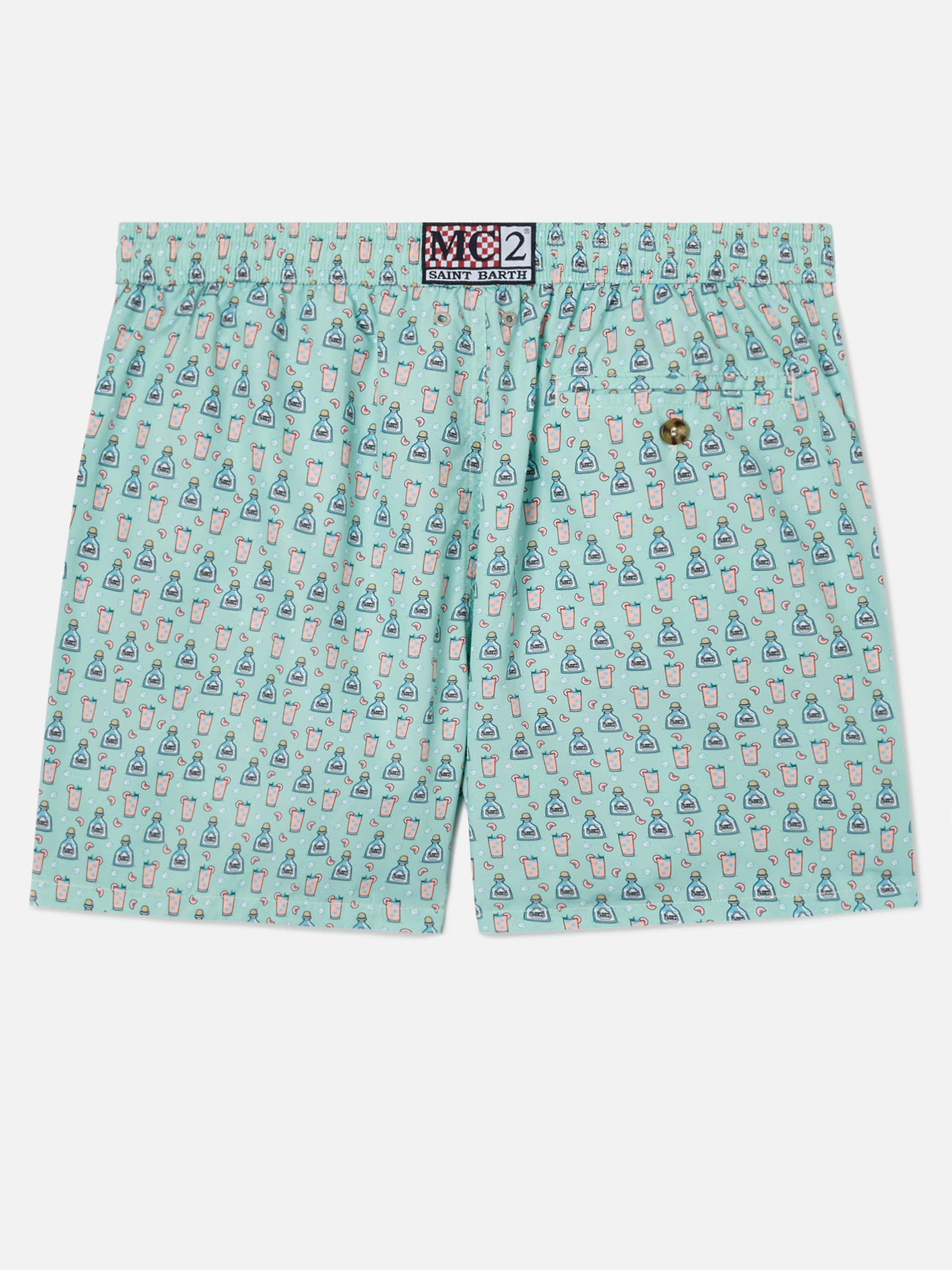 The Lighting Micro swim shorts are crafted from breathable quick-dry fabric designed to provide comfort and freedom of movement. The light green design features an all-over paloma print with cocktail glasses and bottles that evoke the atmosphere of summer aperitifs and give the style a lively and contemporary character. The elasticated waistband with drawstring allows an adjustable fit, while functional pockets and refined details complete the construction. The elasticated antibacterial inner mesh ensures comfort during wear. The style features a mid-length cut and a regular fit.