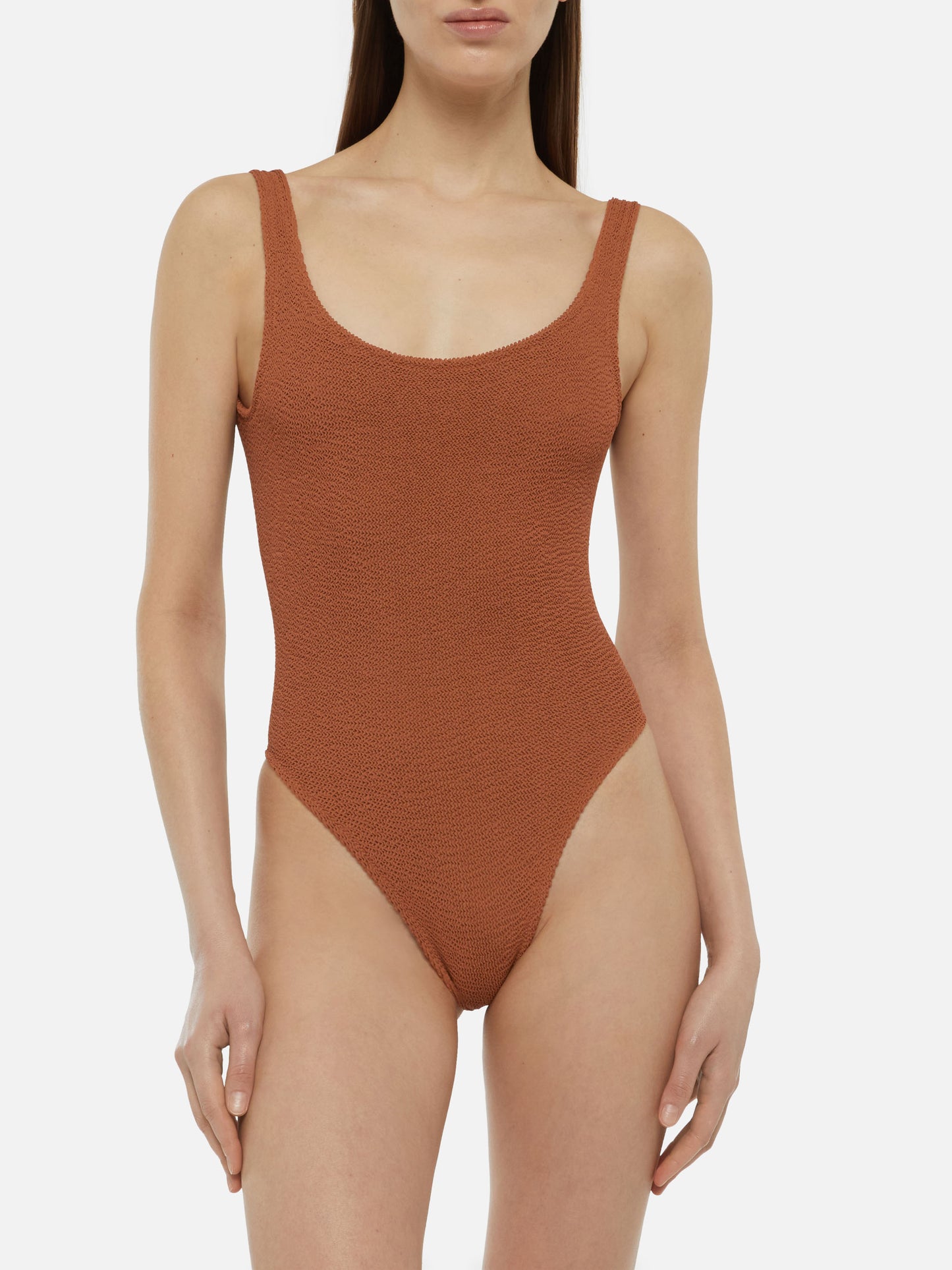 Lora camel brown crinkle one-piece swimsuit - MC2 Saint Barth