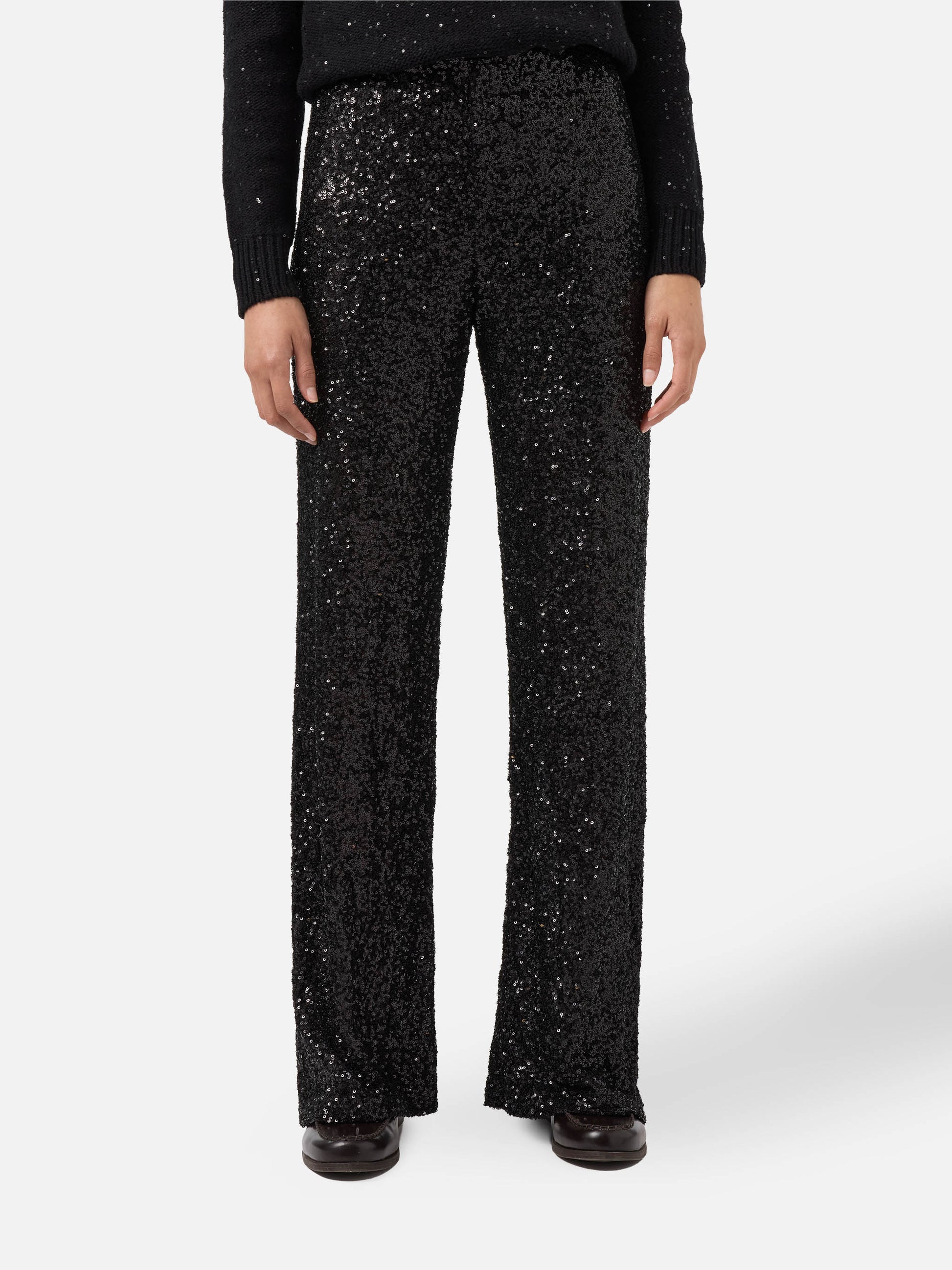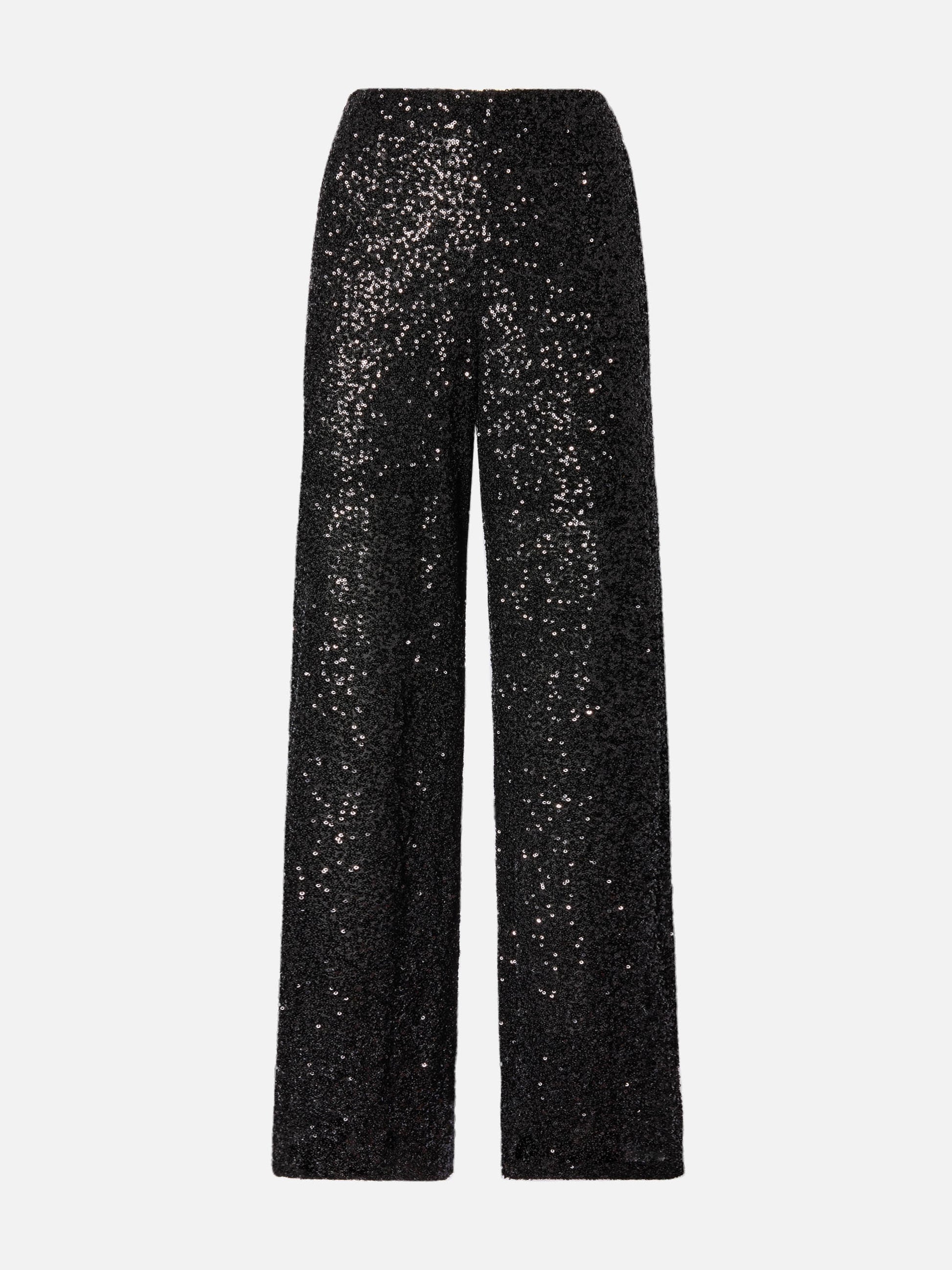 Lucette Hose mit geradem Bein aus schwarzem Paillettenstoff