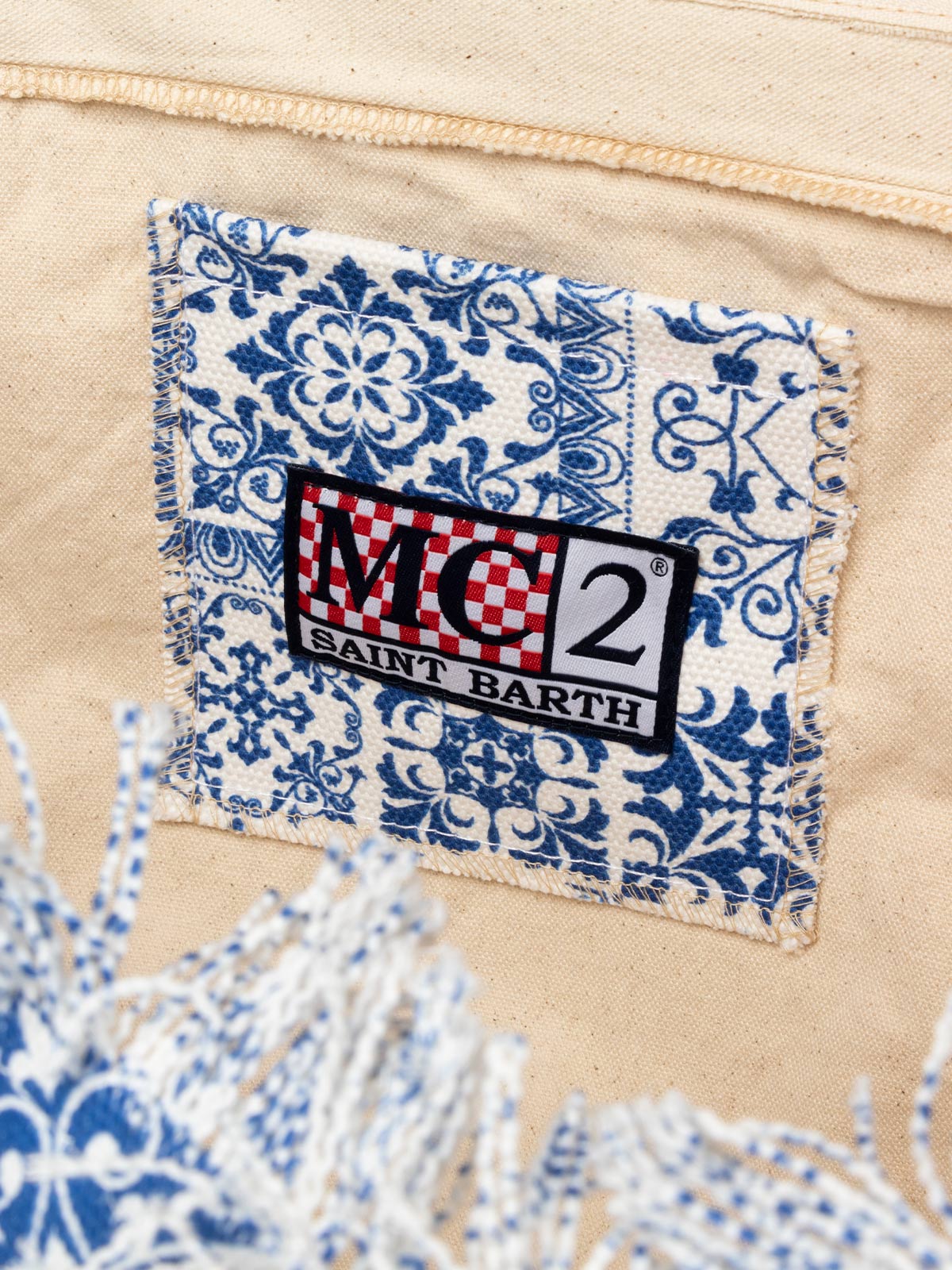Vanity-Einkaufstasche aus Baumwollcanvas mit Maiolica-Patch