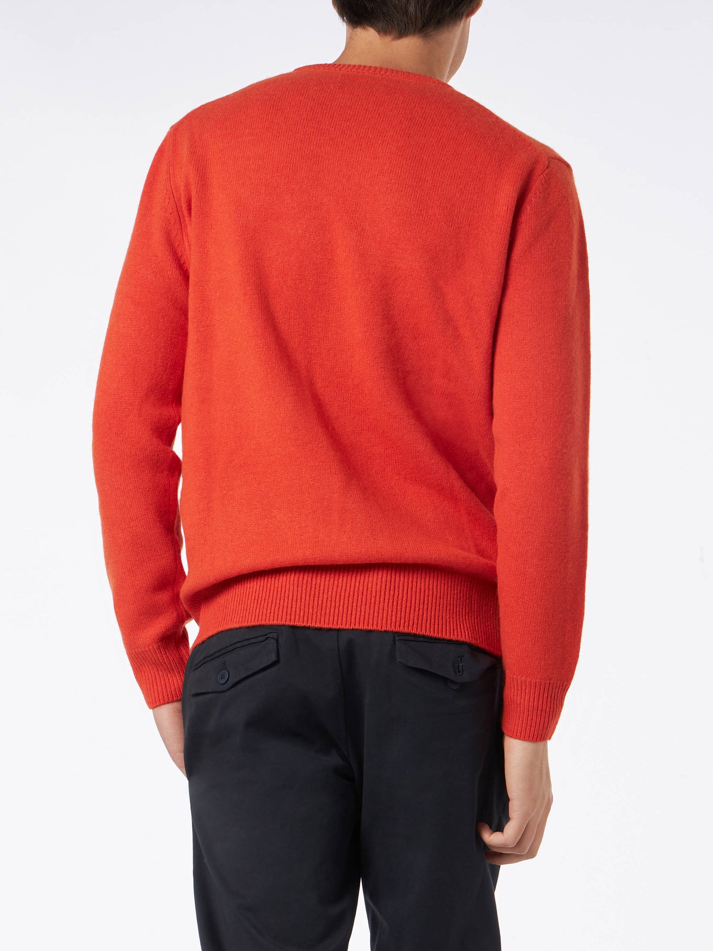 Orangefarbener Herrenpullover mit Rundhalsausschnitt und St. Barth-Stickerei