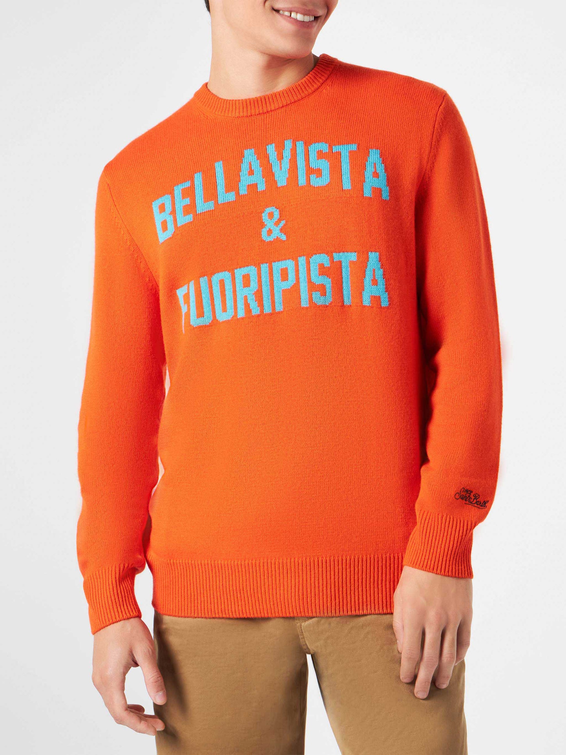 Orangefarbener Herrenpullover mit Aufdruck Bellavista & Fuoripista