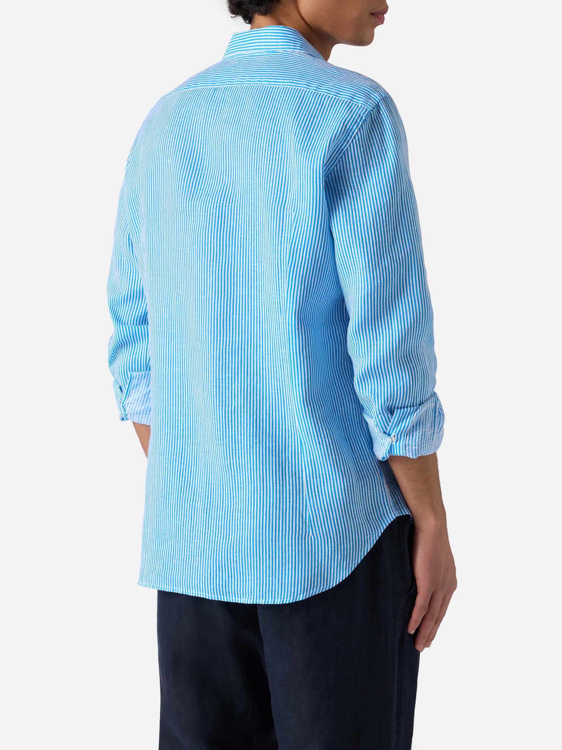 Herren türkis gestreiftes Leinenhemd Pamplona