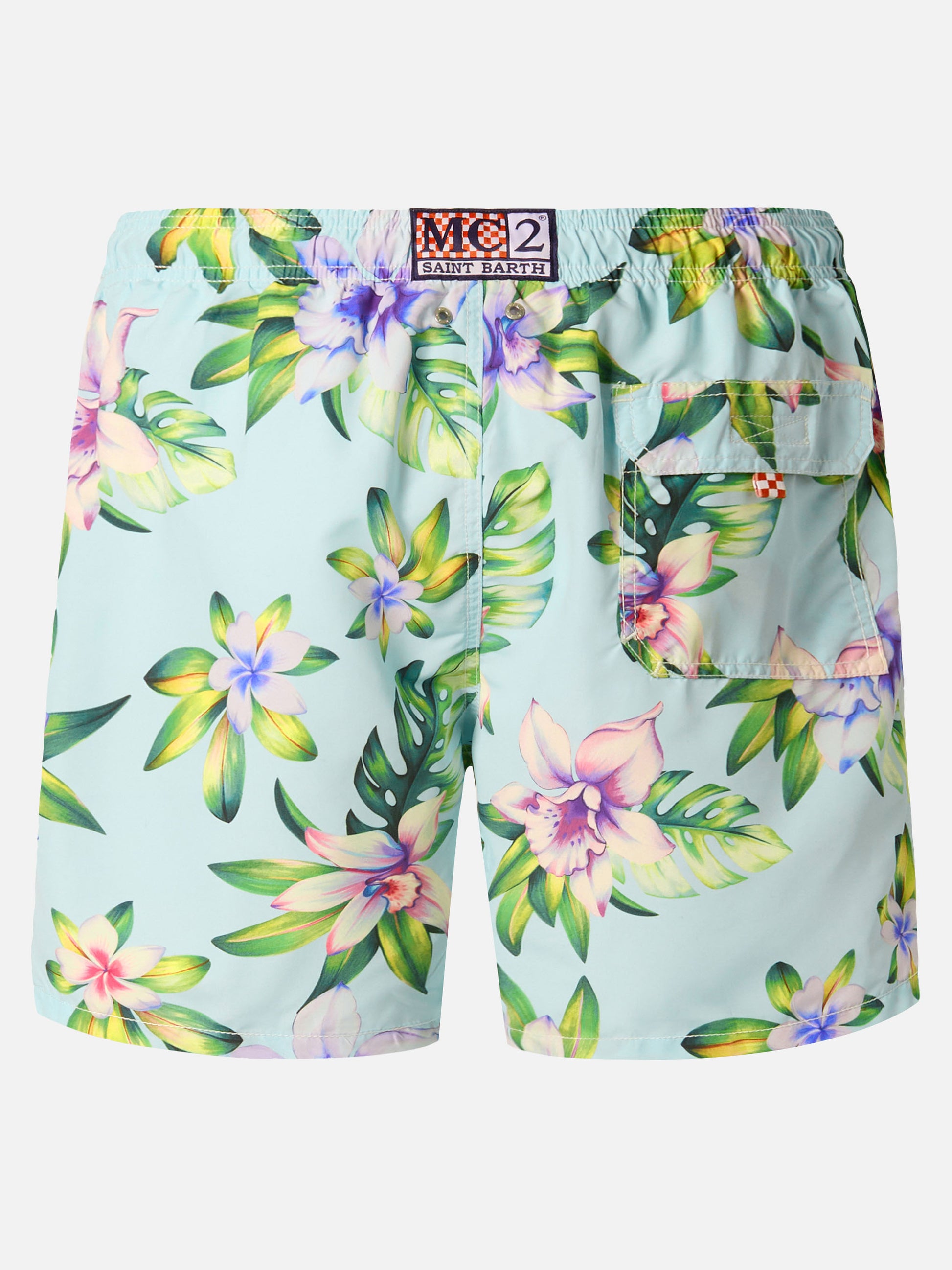 Mittellange Gustavia-Badeshorts mit tropischem Muster