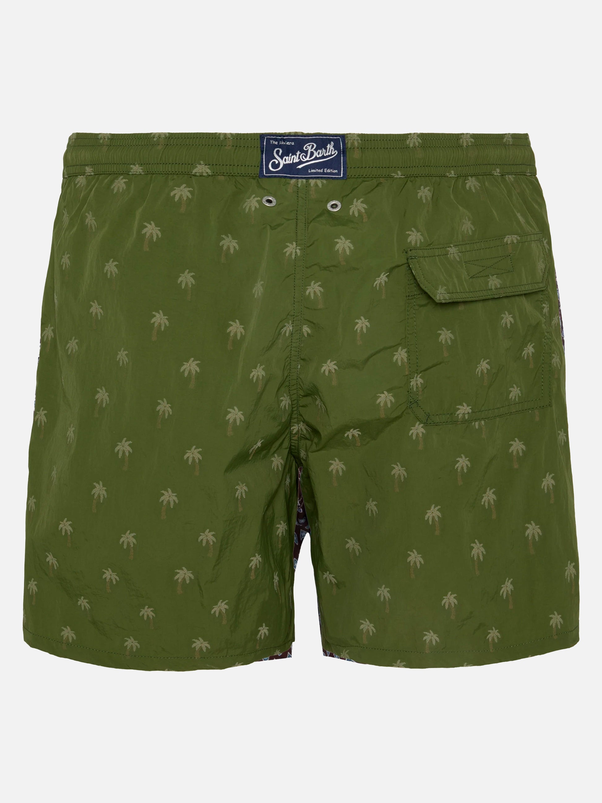 Mittellange Badeshorts Patmos The Riviera mit Palmen-Jacquard