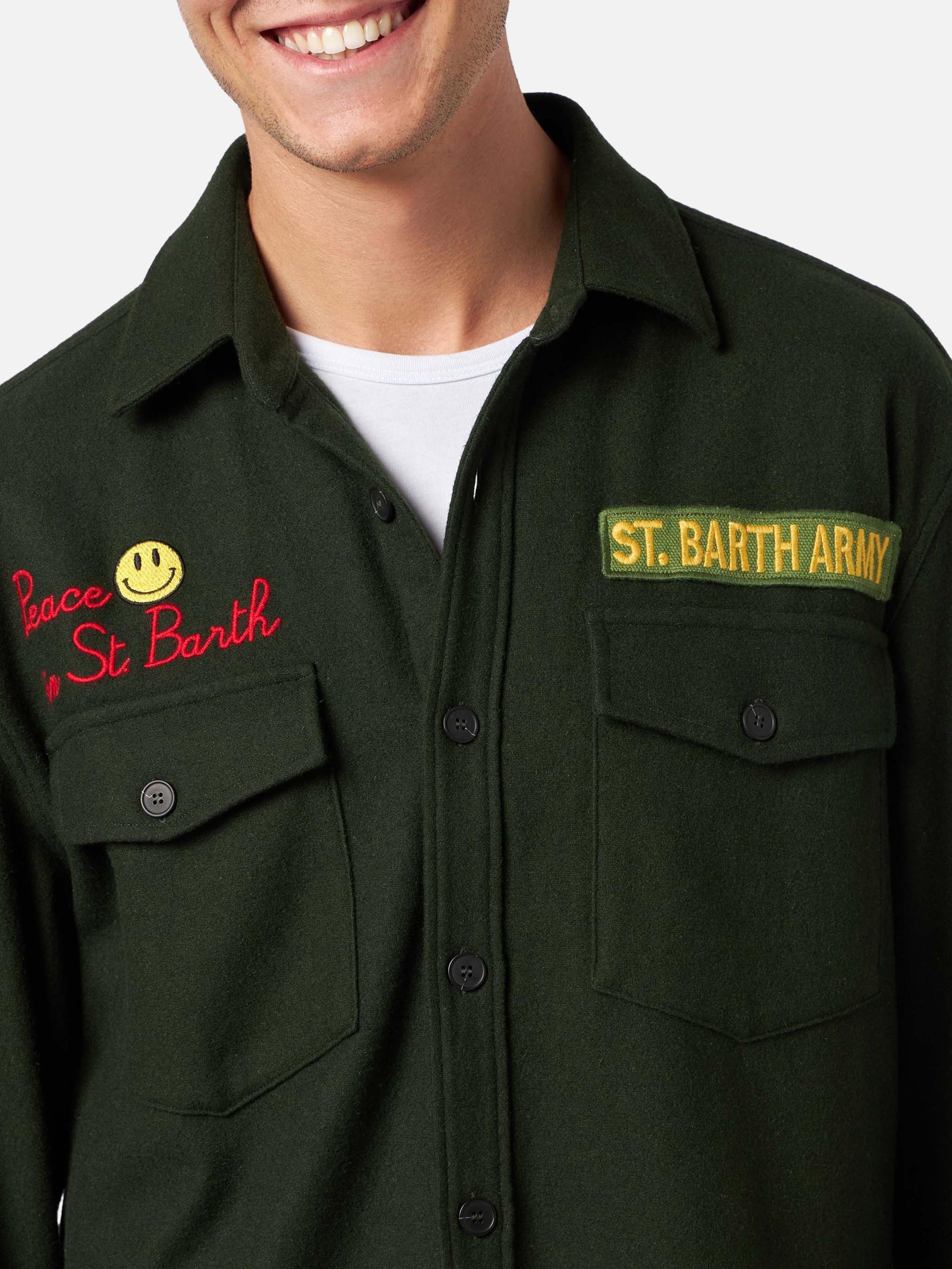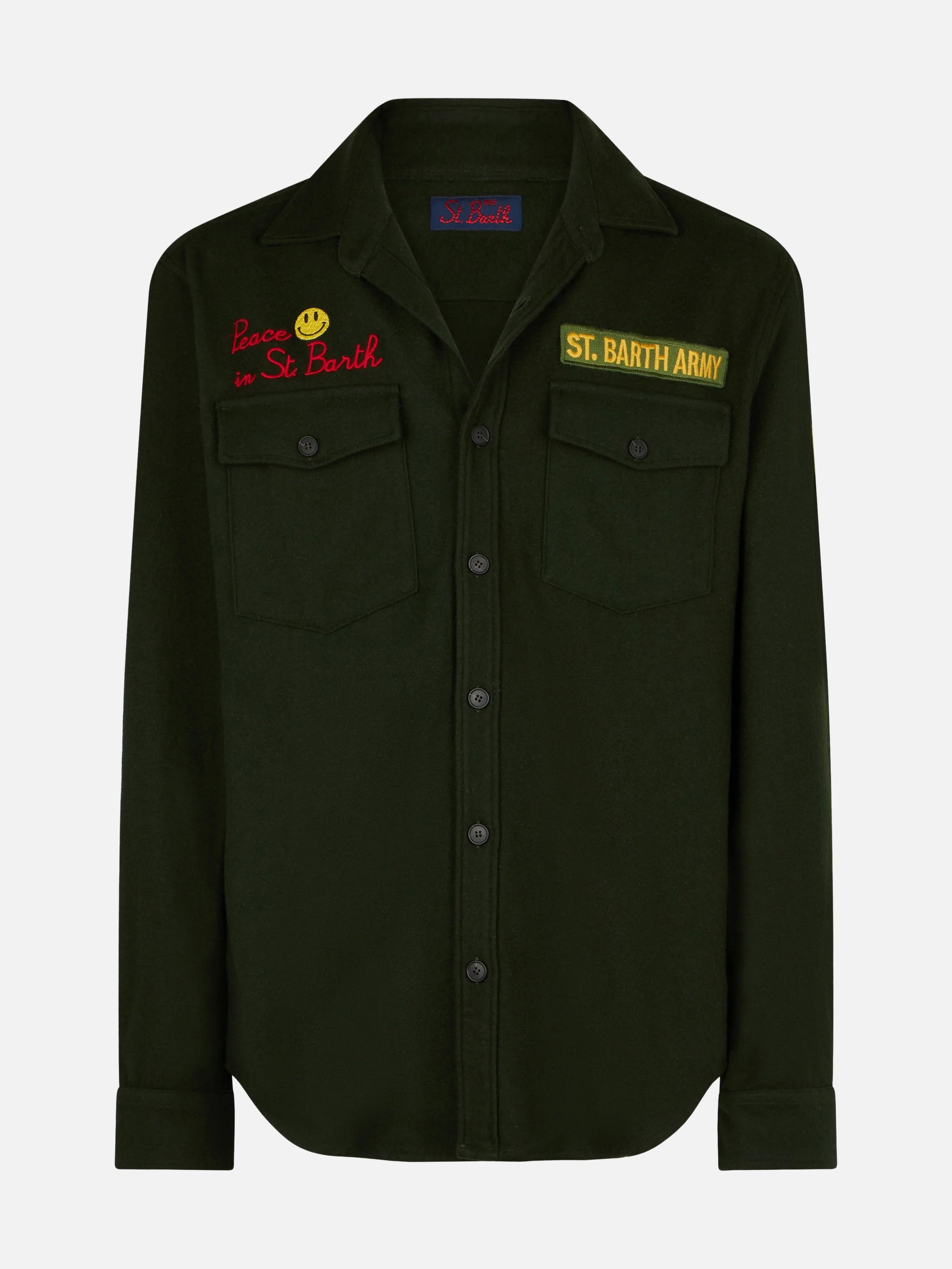 Moleskin-Overshirt mit Peace in St. Barth-Stickerei