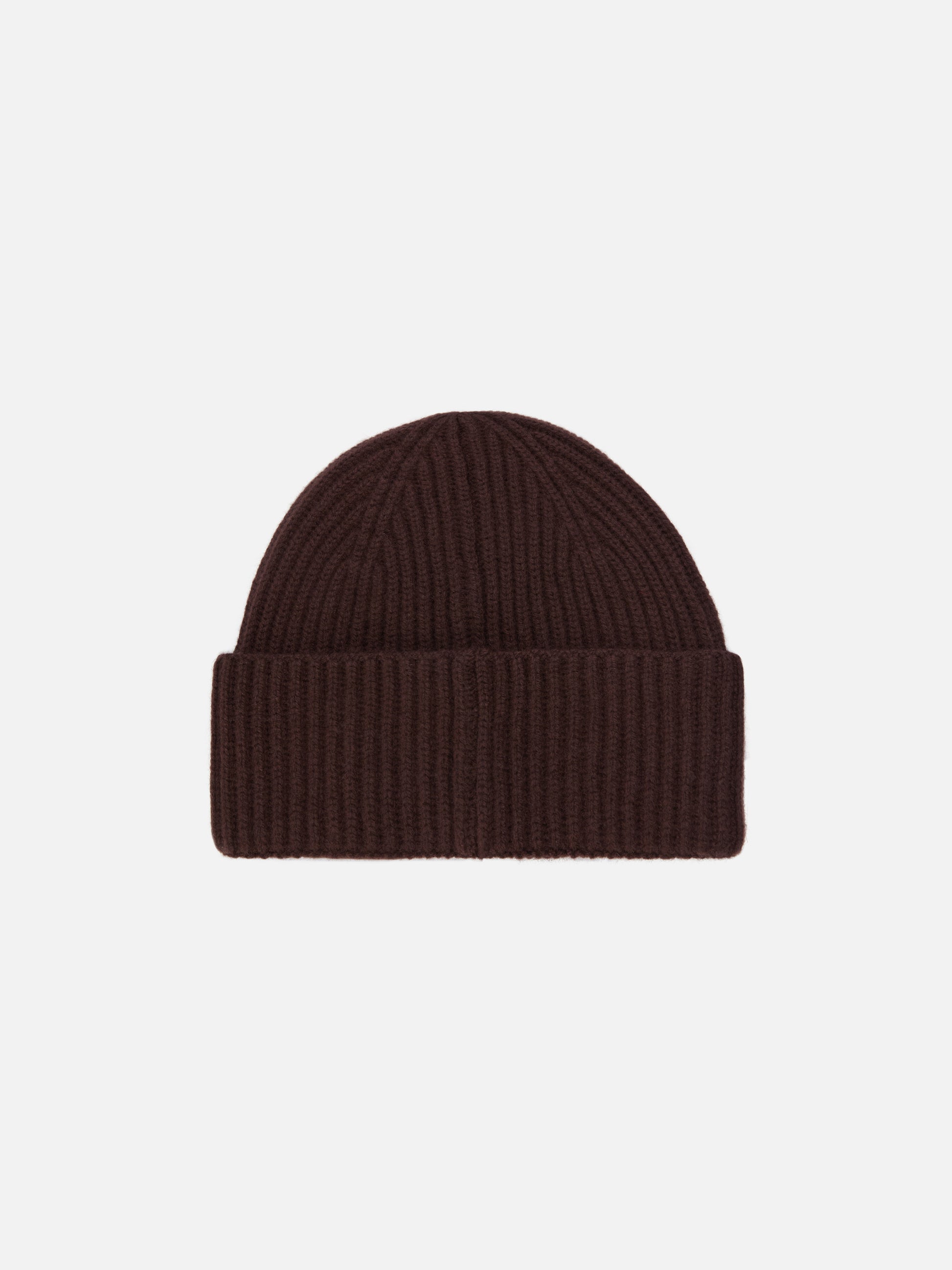 Moss Beanie in brown ribbed knit with St. Barth embroidery
