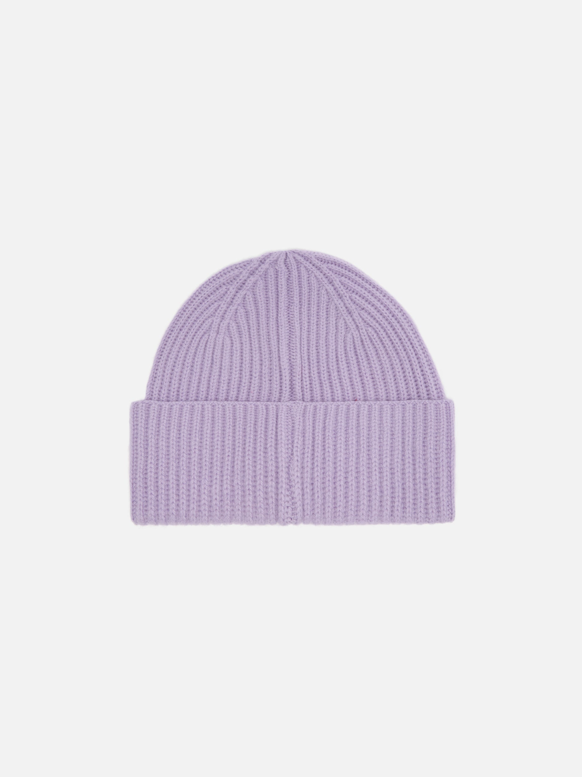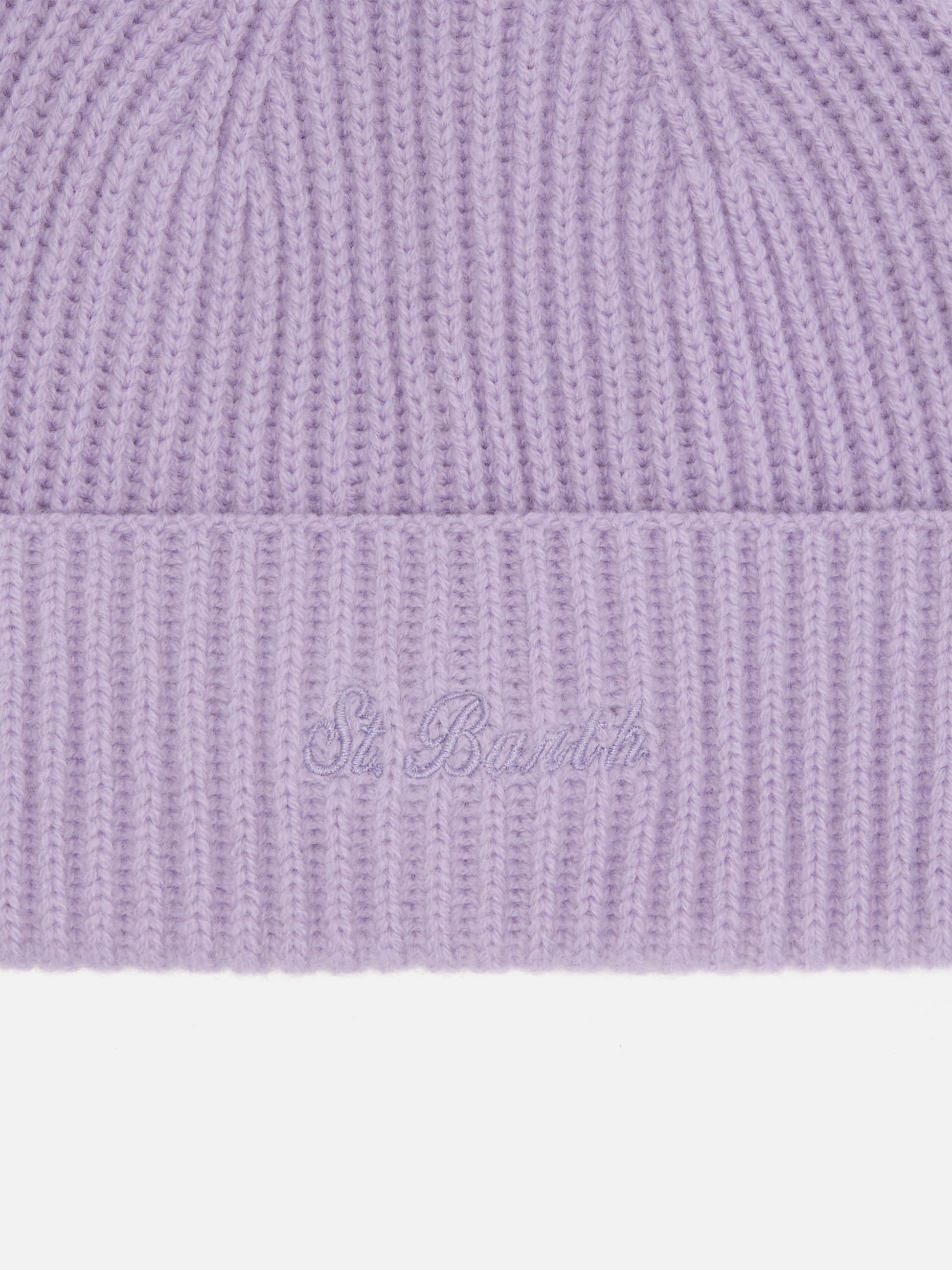 Moss Beanie in lilac ribbed knit with St. Barth embroidery