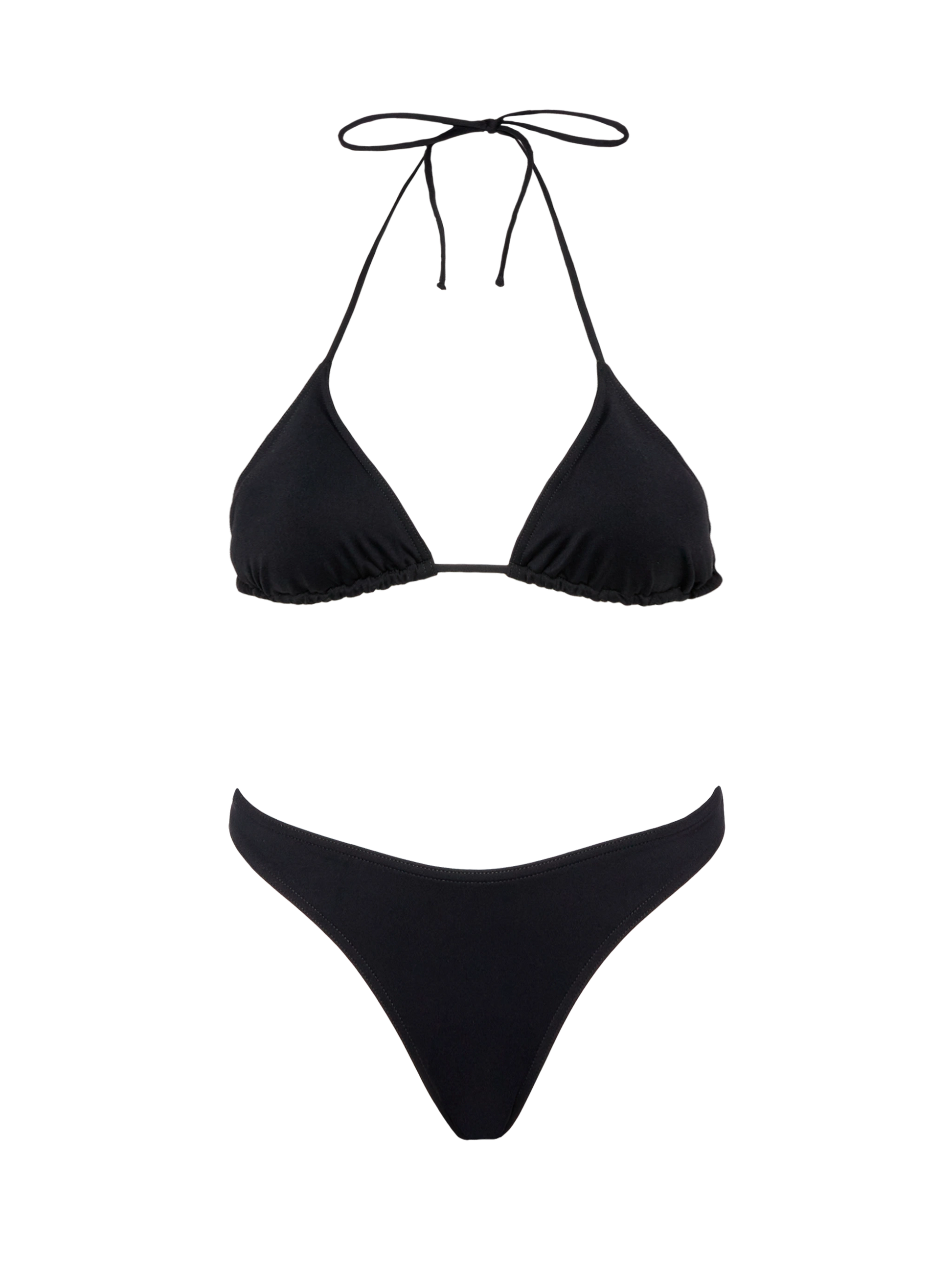 Naomi schwarzer frecher Badeslip - Leah schwarzer Badeanzug mit Triangel-Oberteil