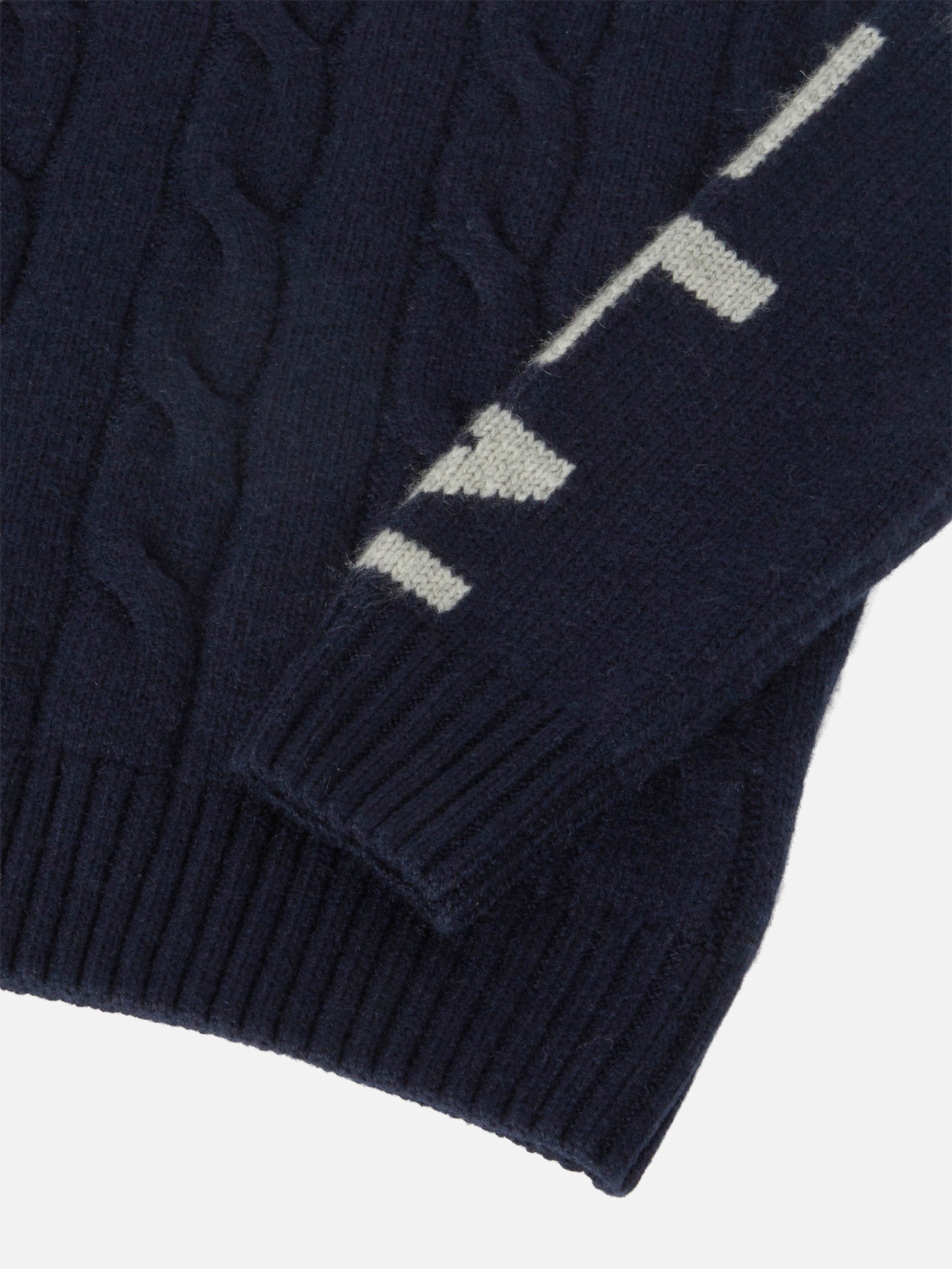 Marineblauer Zopfstrick-Rollkragenpullover Fisherman Jr mit Saint Moritz Jacquard