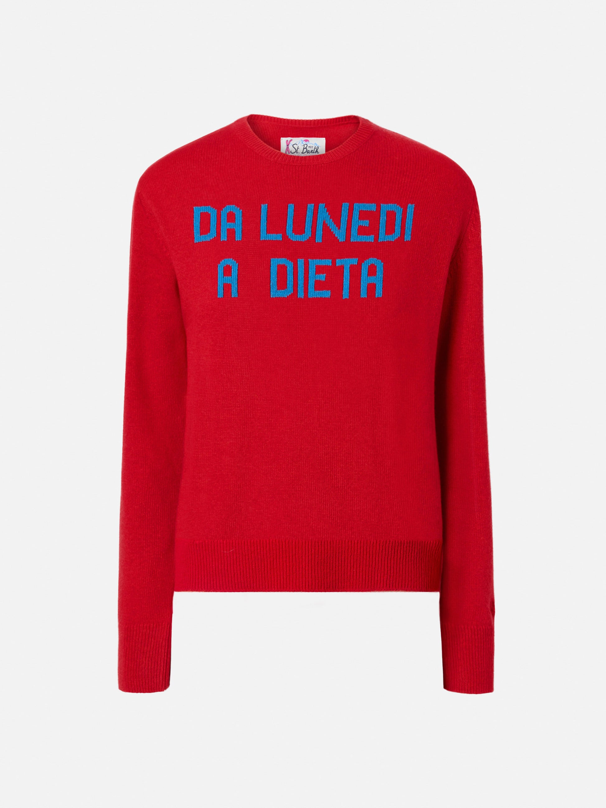 New Queen crewneck with Da lunedì dieta jacquard
