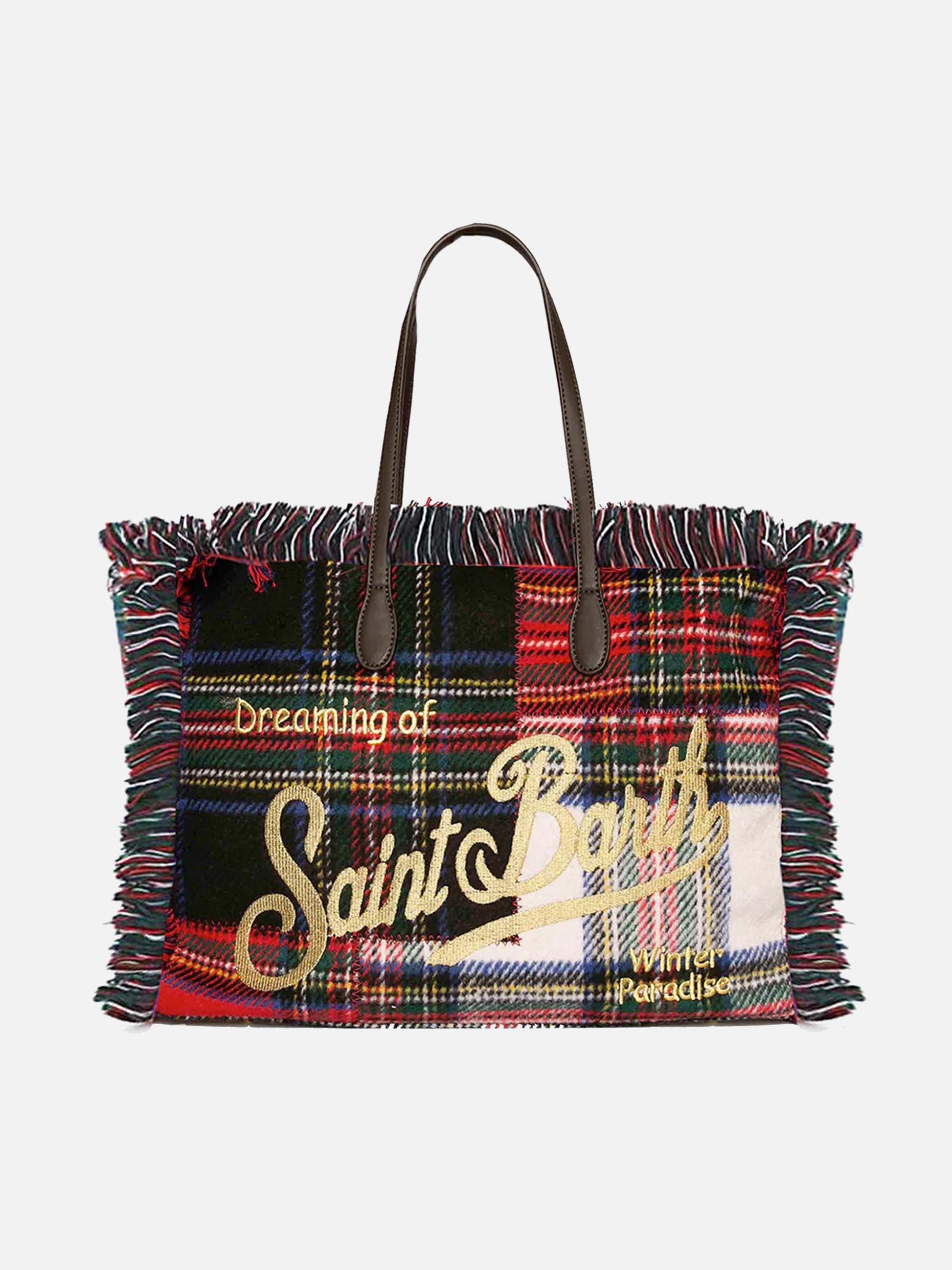 Vanity Woll-Patchwork-Umhängetasche mit Schottenkaro