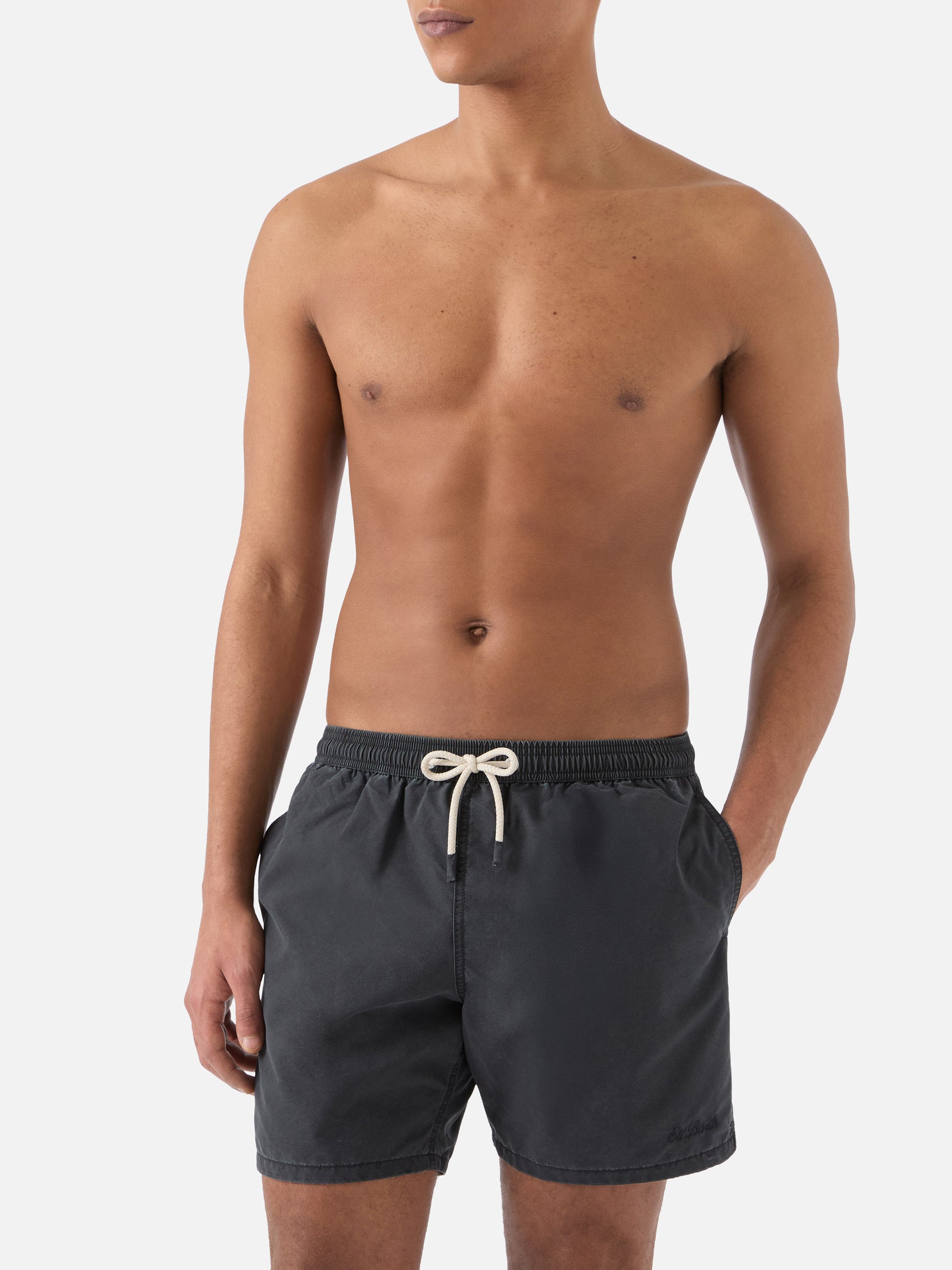 https://it.mc2saintbarth.com/de/products/patmos-swim-shorts-in-black-with-used-effect-and-logo-embroidery10775377969498Patmos swim shorts in black with used effect and logo embroidery149,00https:files/UID_PATM00300510L-MAN-SWIMSHORT-BLACK-MC2-MC2_1.jpghttps:files/UID_PATM00300510L-MAN-SWIMSHORT-BLACK-MC2-MC2_1.jpgEUROutOfStockSWIMSHORT650948215130Alle Produkte – nur von Man649134276954AVADA - Bestseller603371077978Badeshorts Alle279983751352Einfarbige Badeshorts für Herren288251543736Mann – Alle Badebekleidung anzeigen628483424602Patmos Herren Badeshorts626723225946The Light Fabric - Herren654689960282Upselling_Man_SwimshortsThe Patmos swim shorts are crafted from lightweight breathable fabric designed to ensure comfort and freedom of movement. A special coating treatment creates a slightly faded finish that evolves with wear, giving the garment a distinctive used effect. The elasticated waistband with drawstring allows for an adjustable fit, while functional details such as side pockets, an internal small pocket and a back pocket with flap and velcro closure with water drainage add practicality to the design. The antibacterial stretch inner mesh ensures comfort and support. The mid length cut and regular fit complete the style.