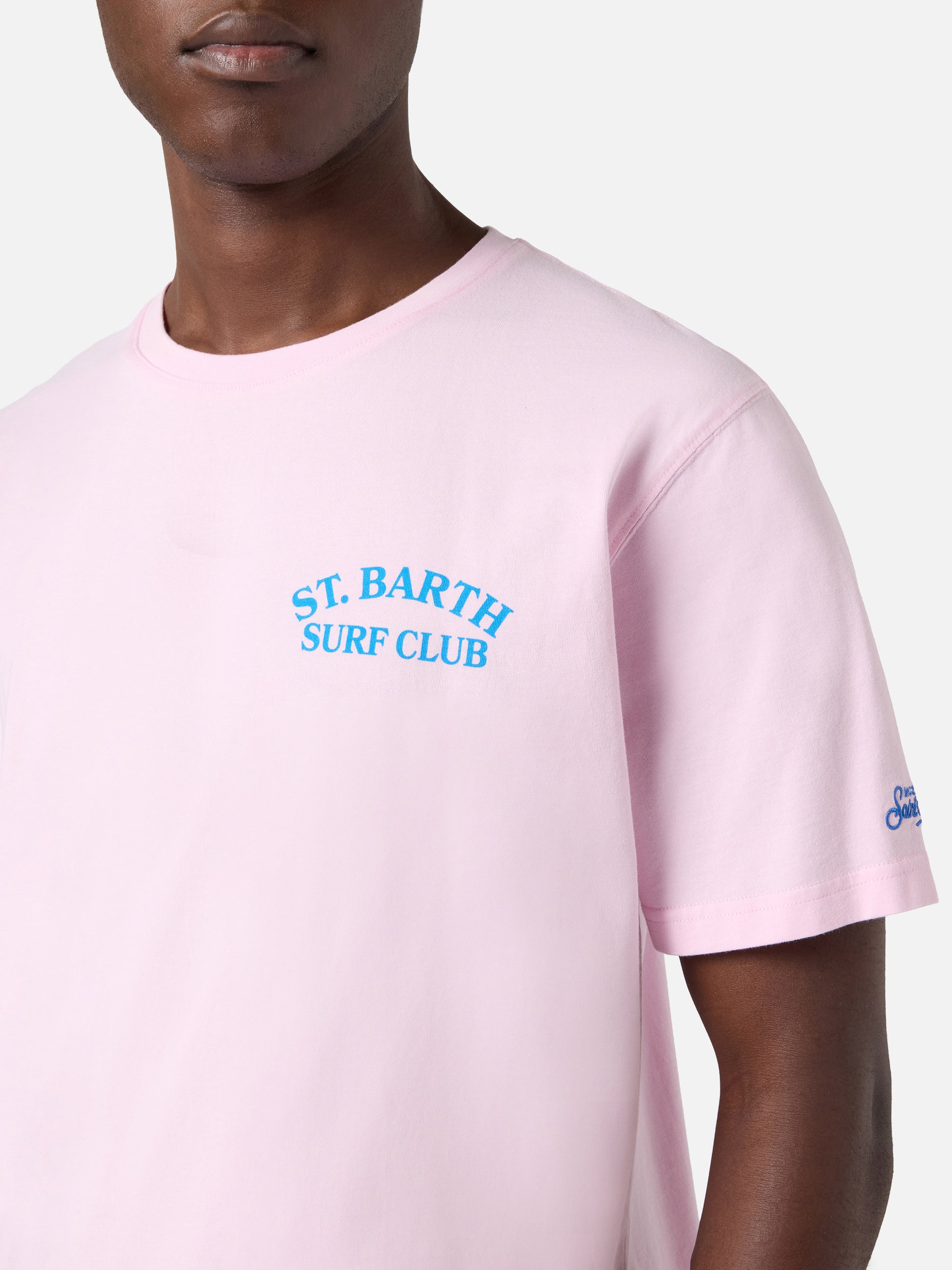 Pink Portland t-shirt with St. Barth Surf Club print