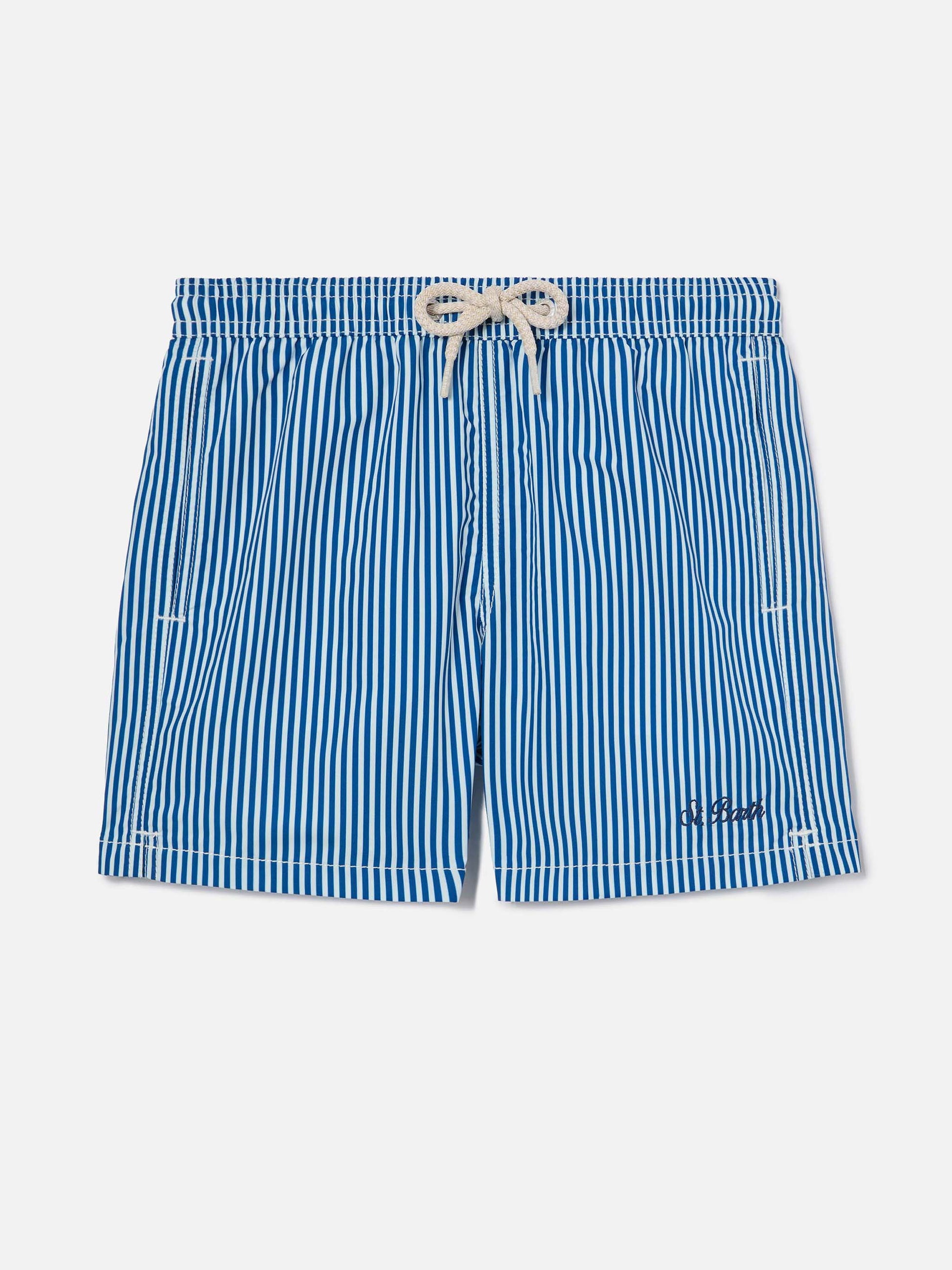 Syros Jr swim shorts thin striped with St. Barth embroidery