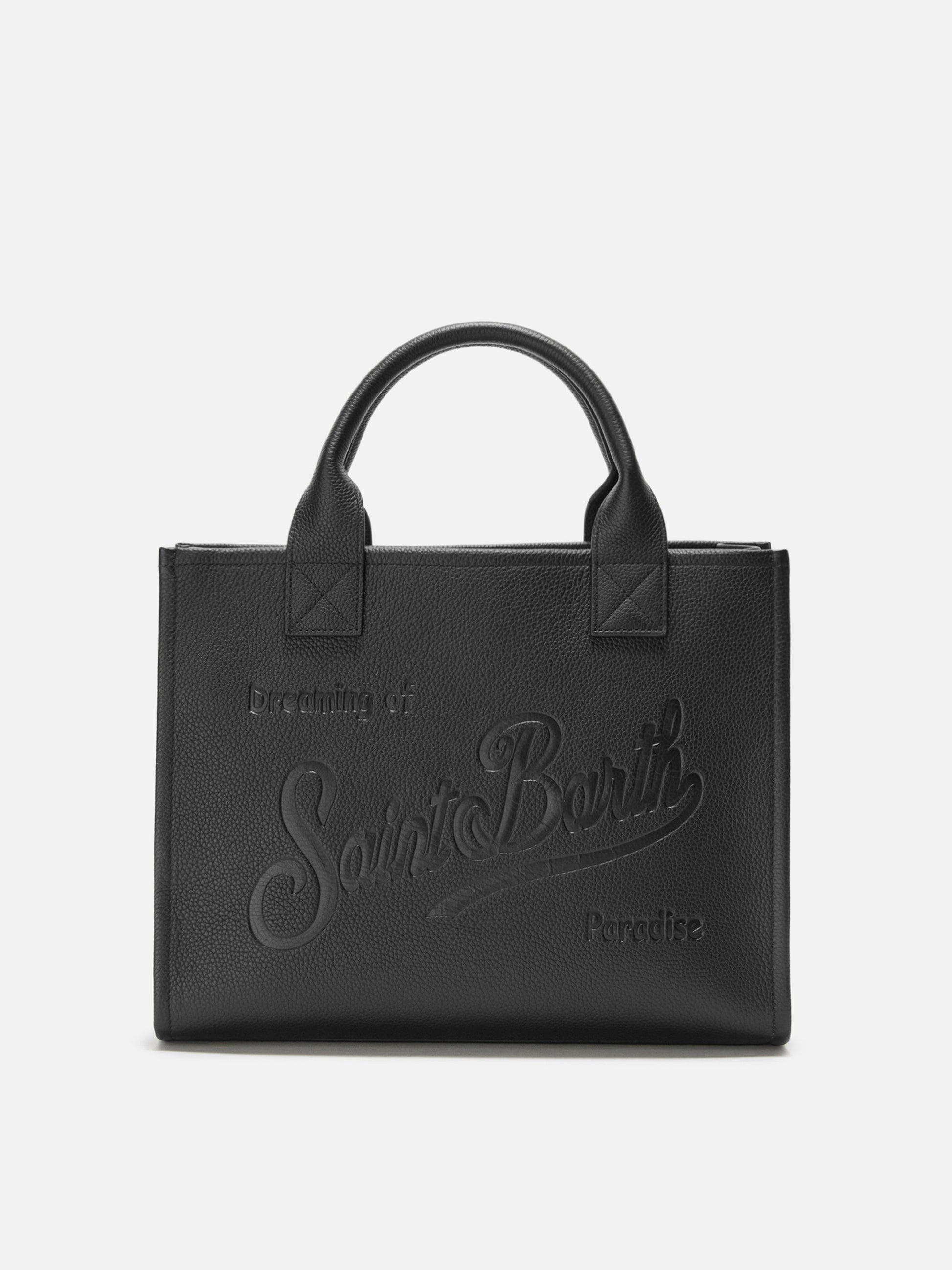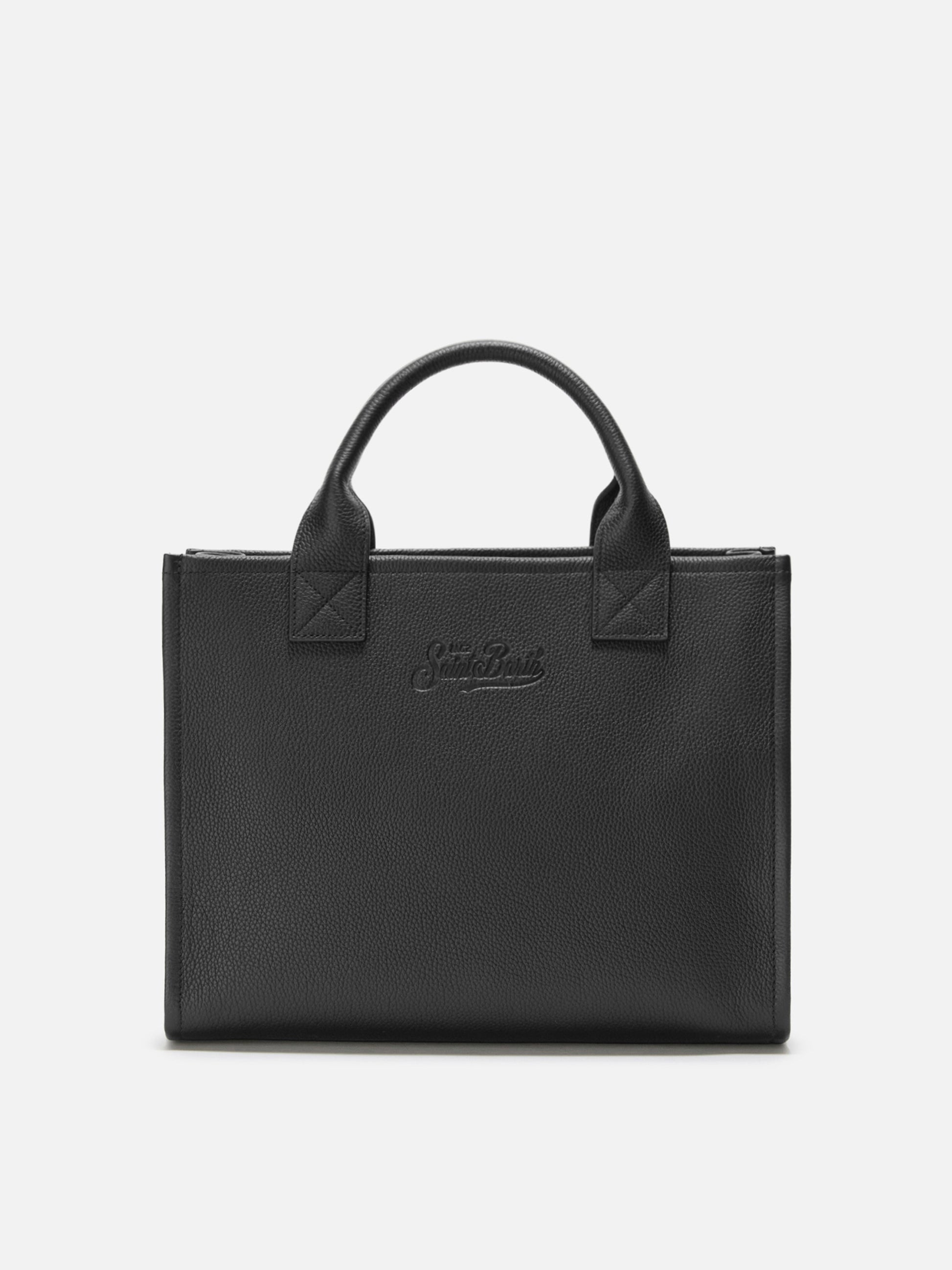 Vanity Bag Große Schultertasche aus schwarzem gehämmertem Leder