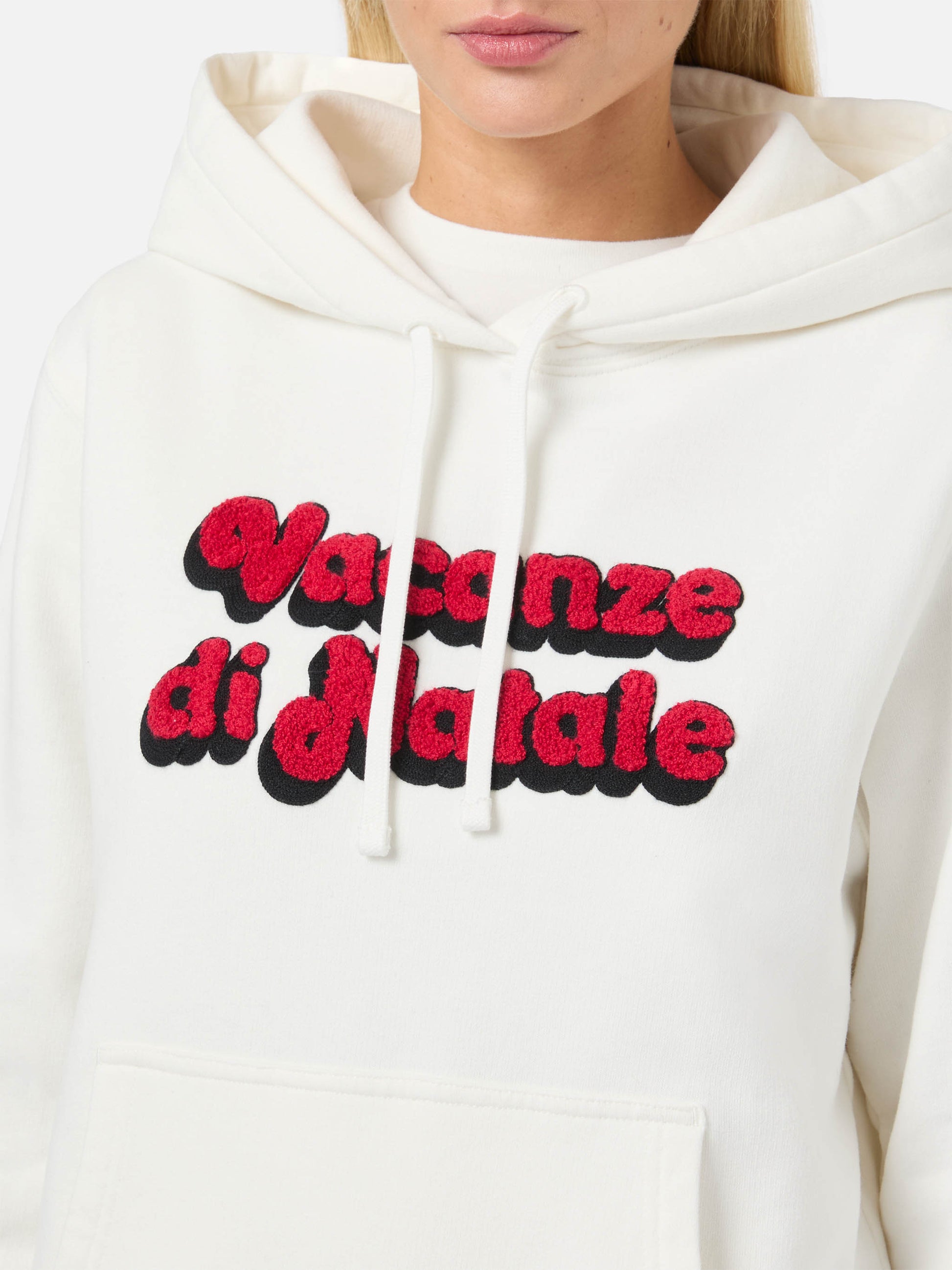 Virginia cotton hoodie in white with Vacanze di Natale embroidery | VACANZE DI NATALE SPECIAL EDITION