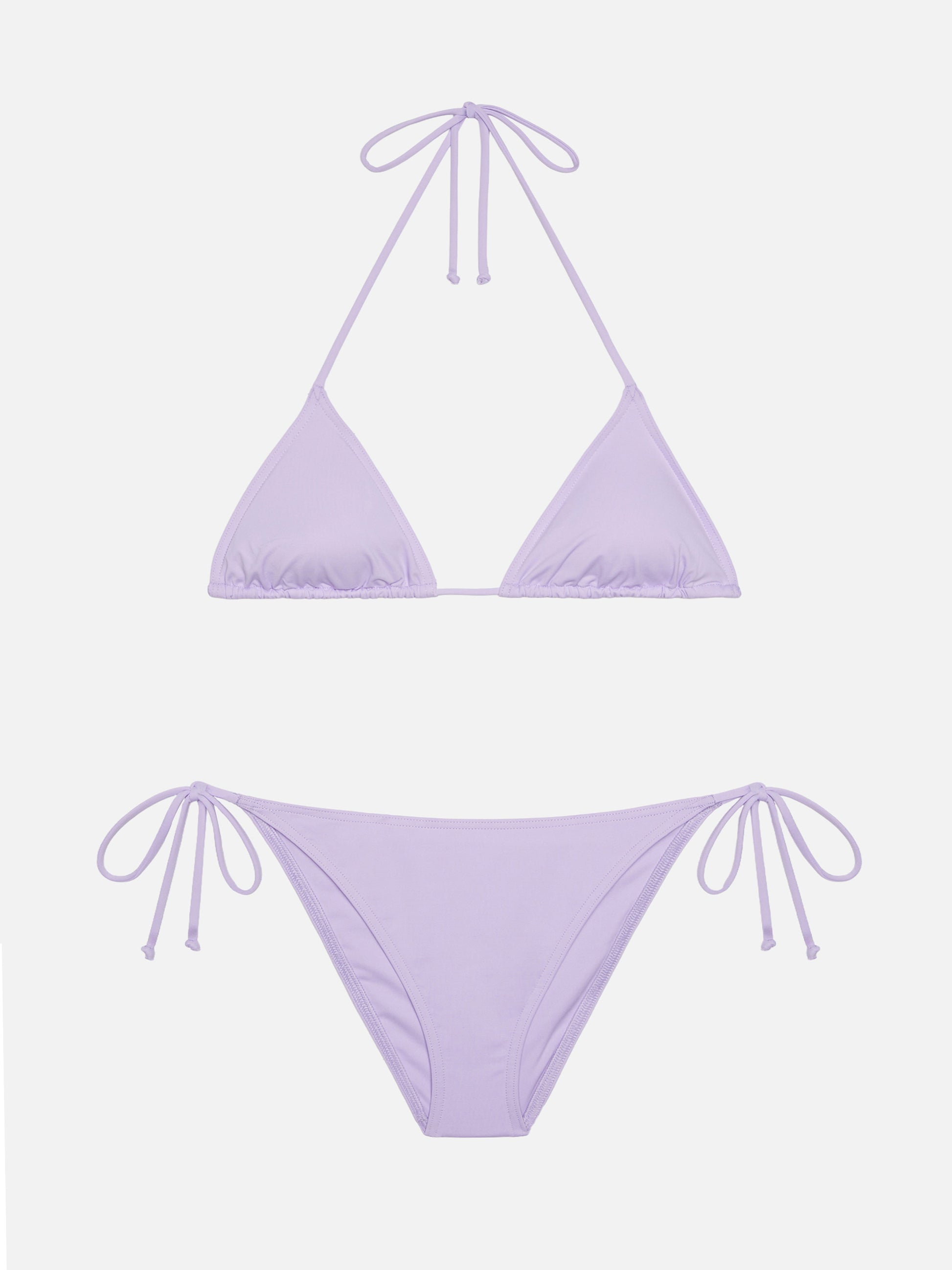 Lilafarbene klassische Badehose „Virgo“ – Lilafarbener Badeanzug mit Triangel-Oberteil „Leah“