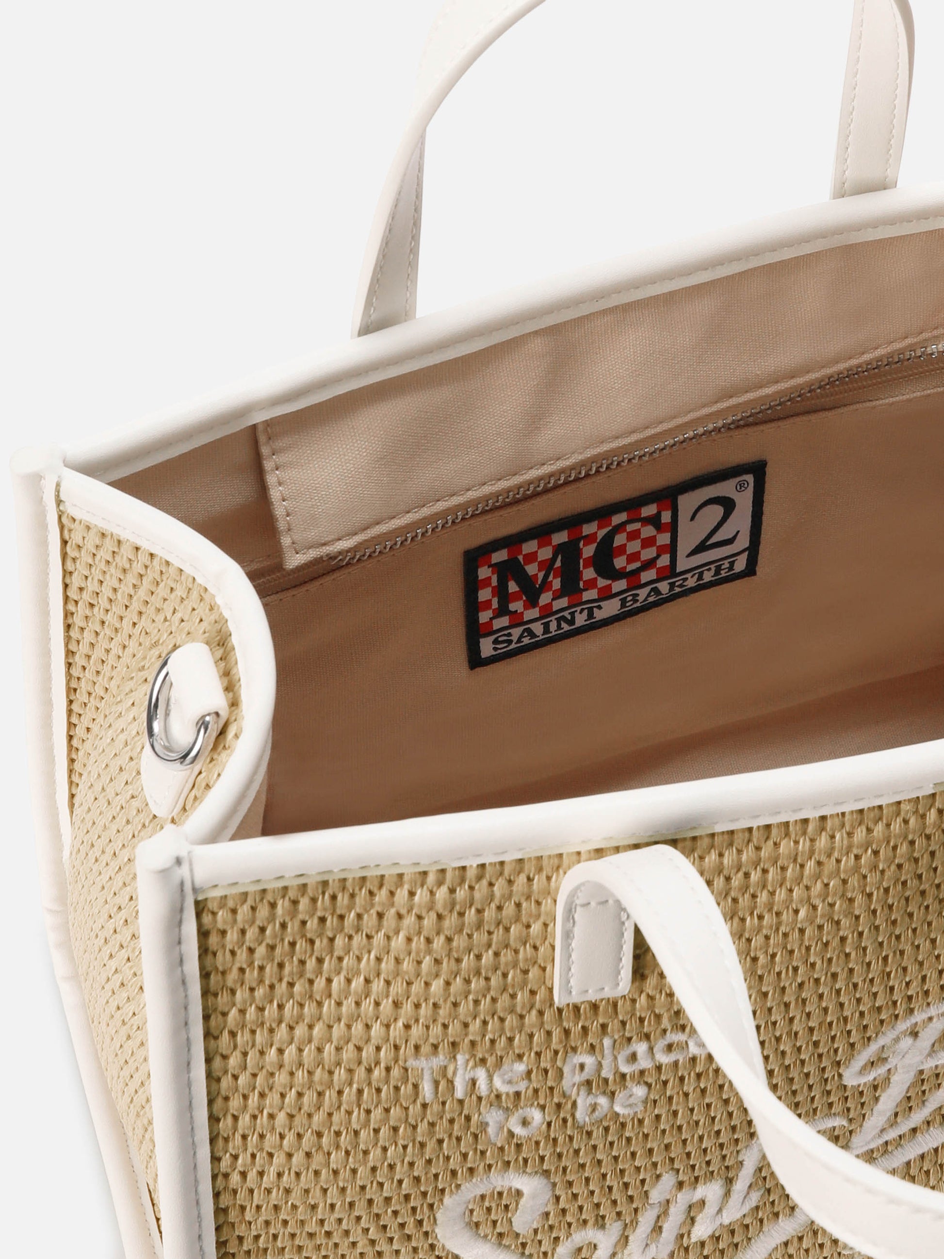 Vivian medium straw effect bag with white embroidered logo