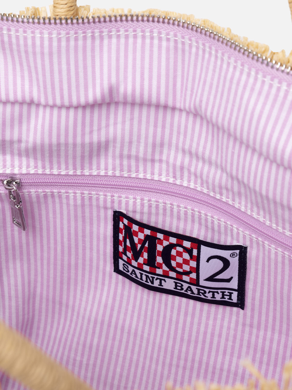 Wassergrün gestreifte Colette Straw Handtasche mit Stickerei
