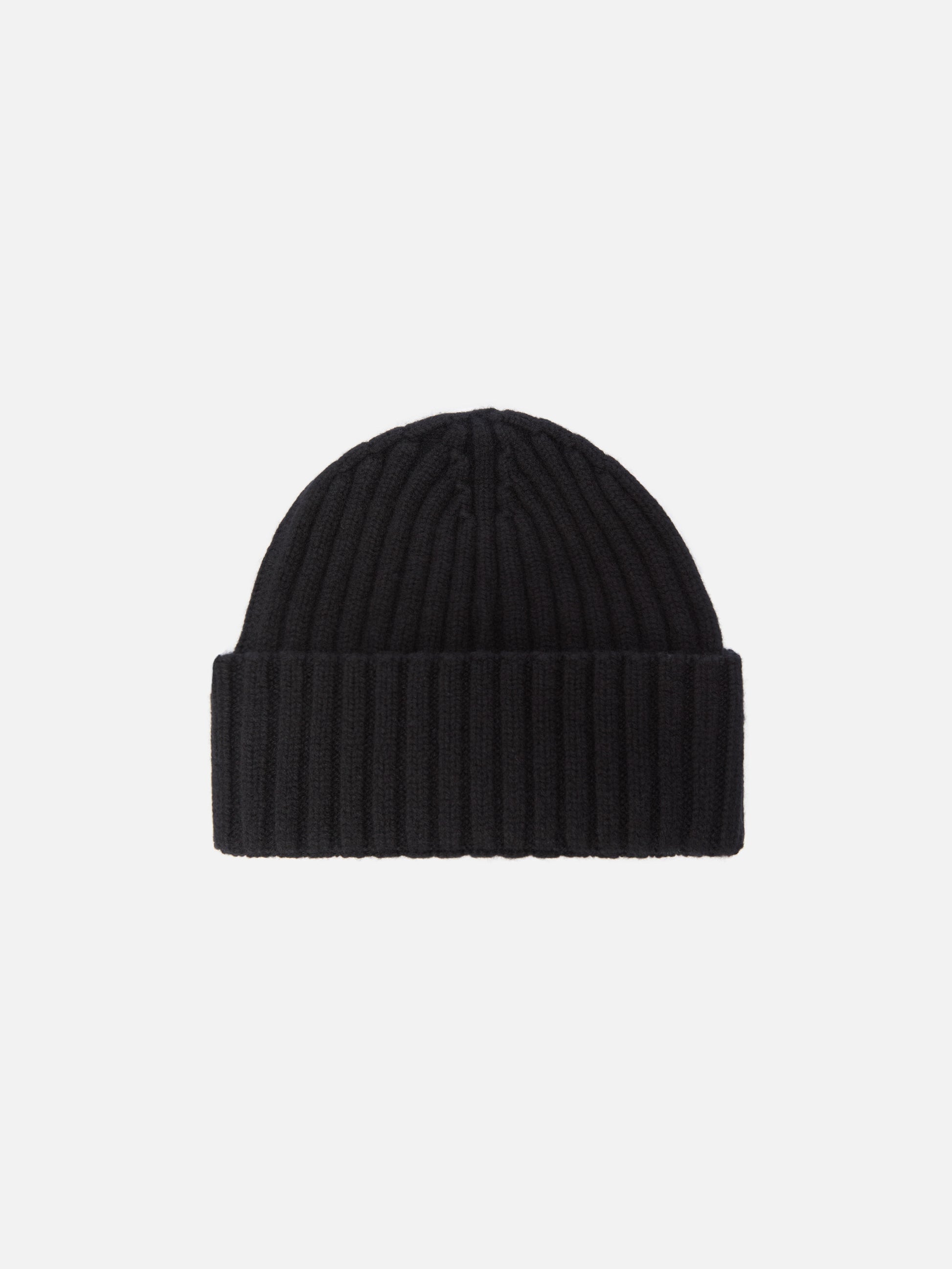 Wengen beanie in black wool with St. Barth embroidery on the turn-up