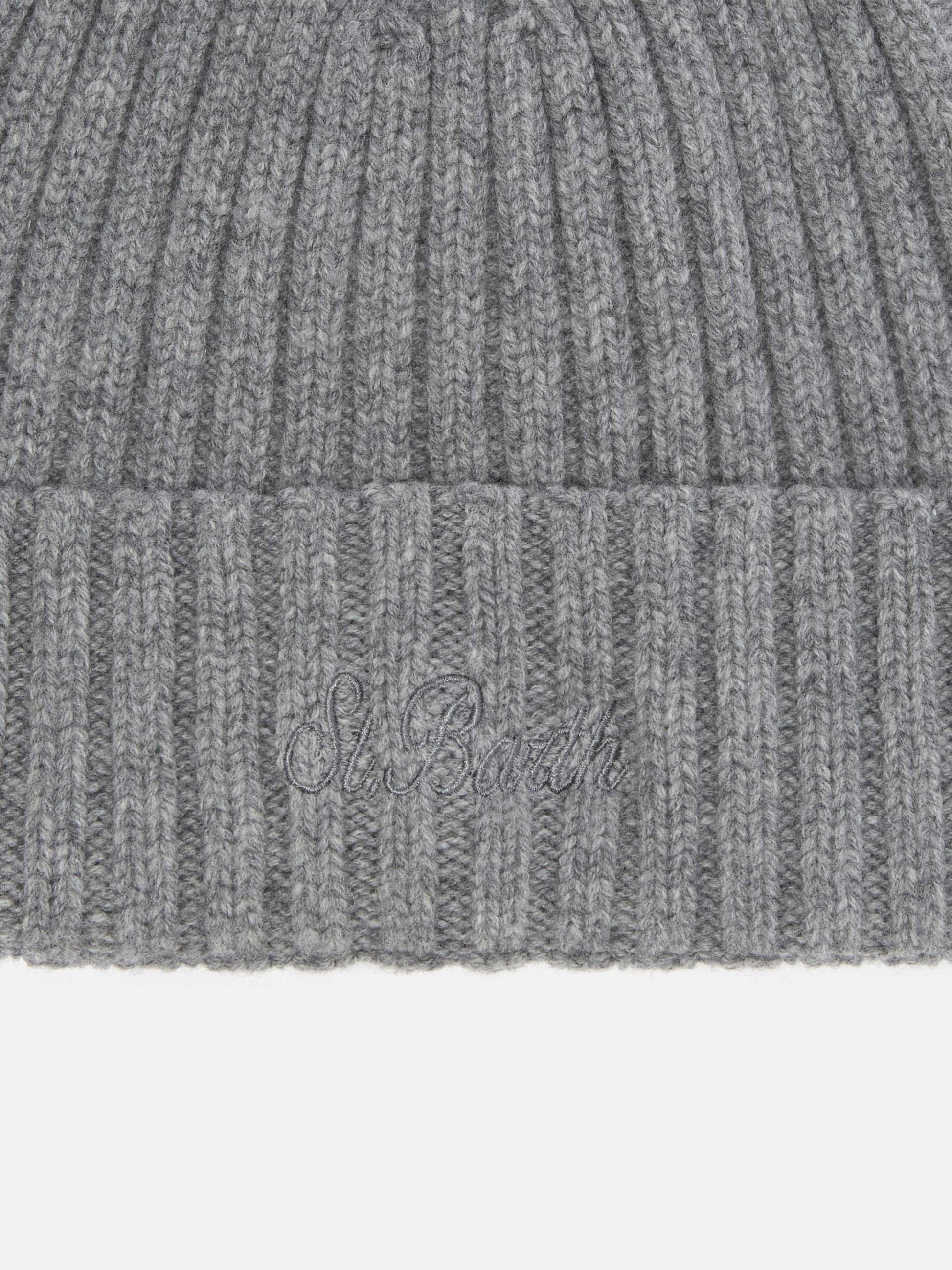 Wengen beanie in grey melange wool with St. Barth embroidery on the turn-up