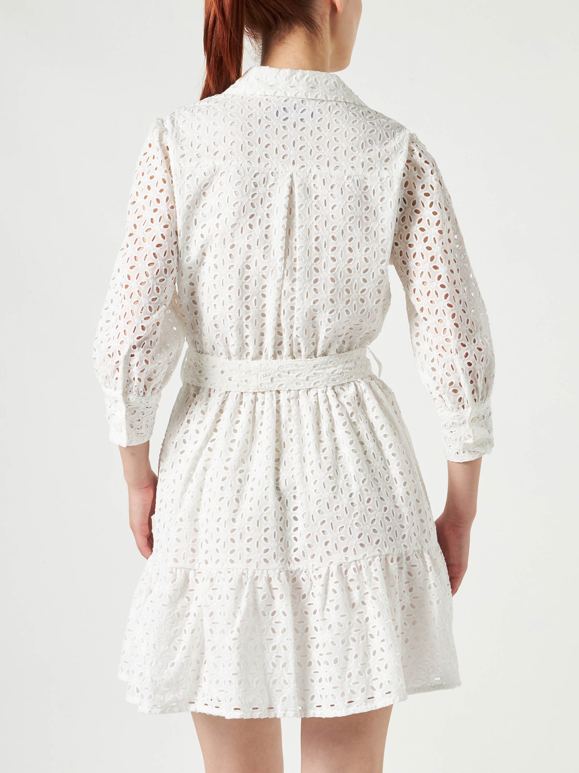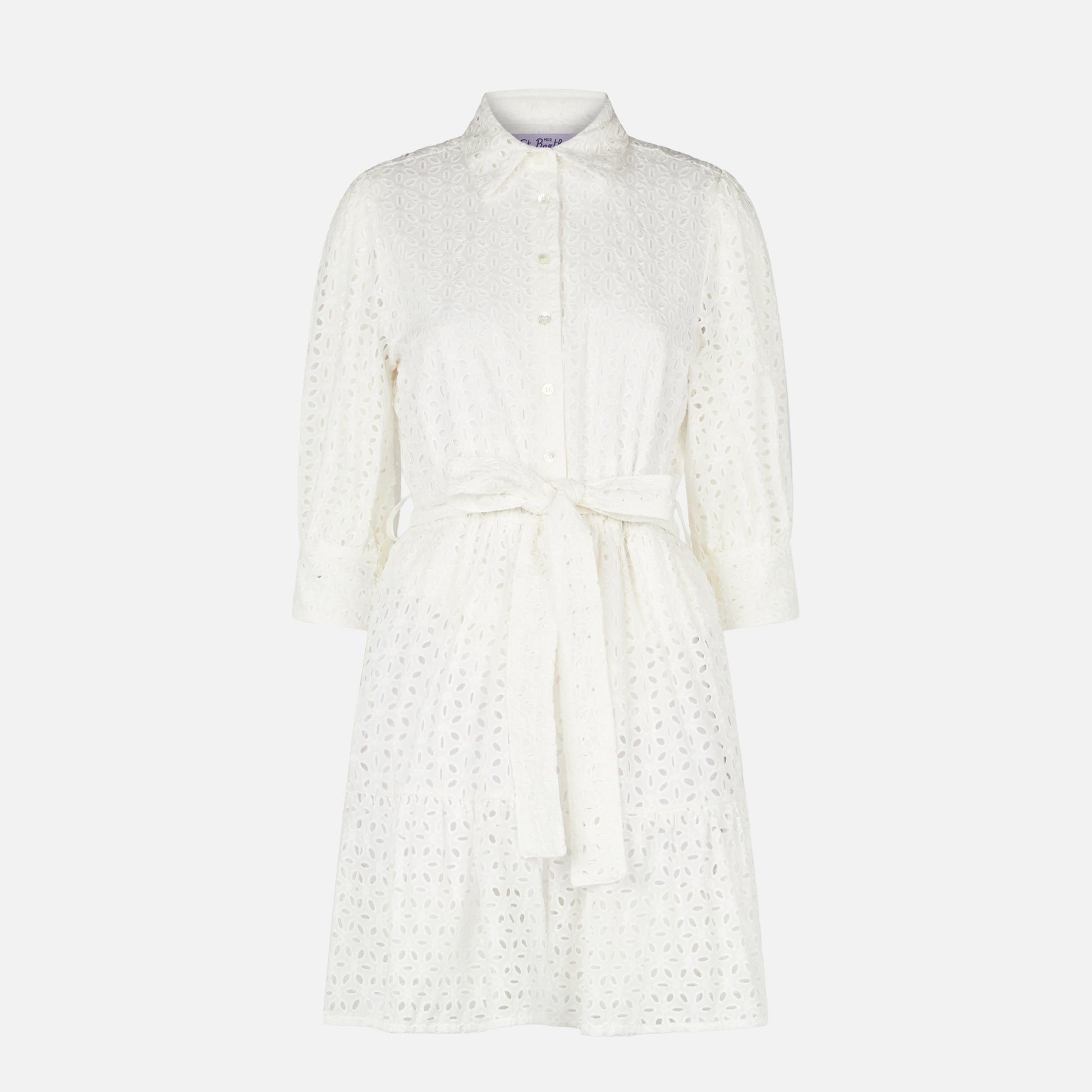 Weißes Baumwoll-Kurzkleid Daisi mit Stickereien