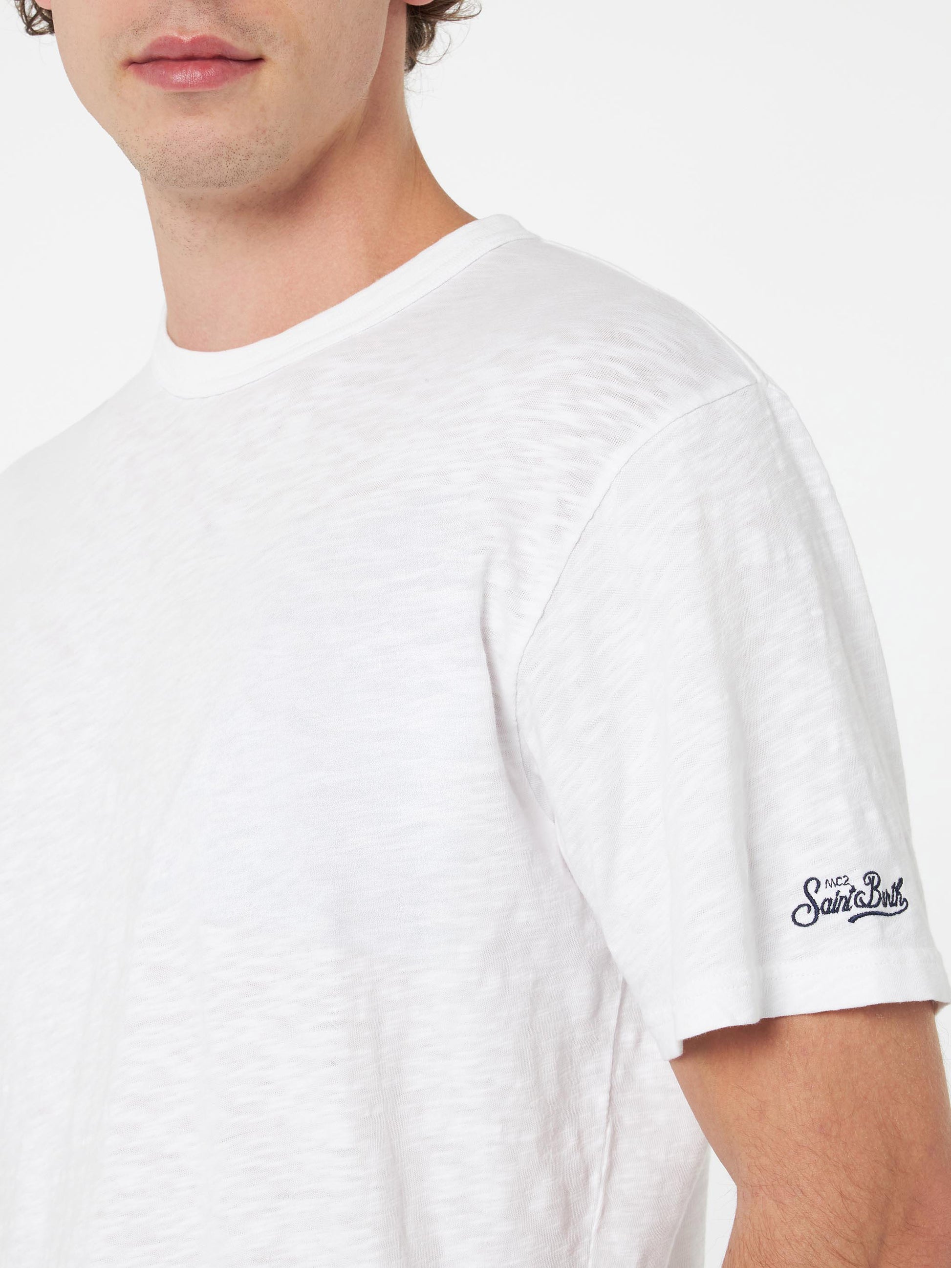 Weißes geflammtes Baumwoll-T-Shirt President mit Stickerei