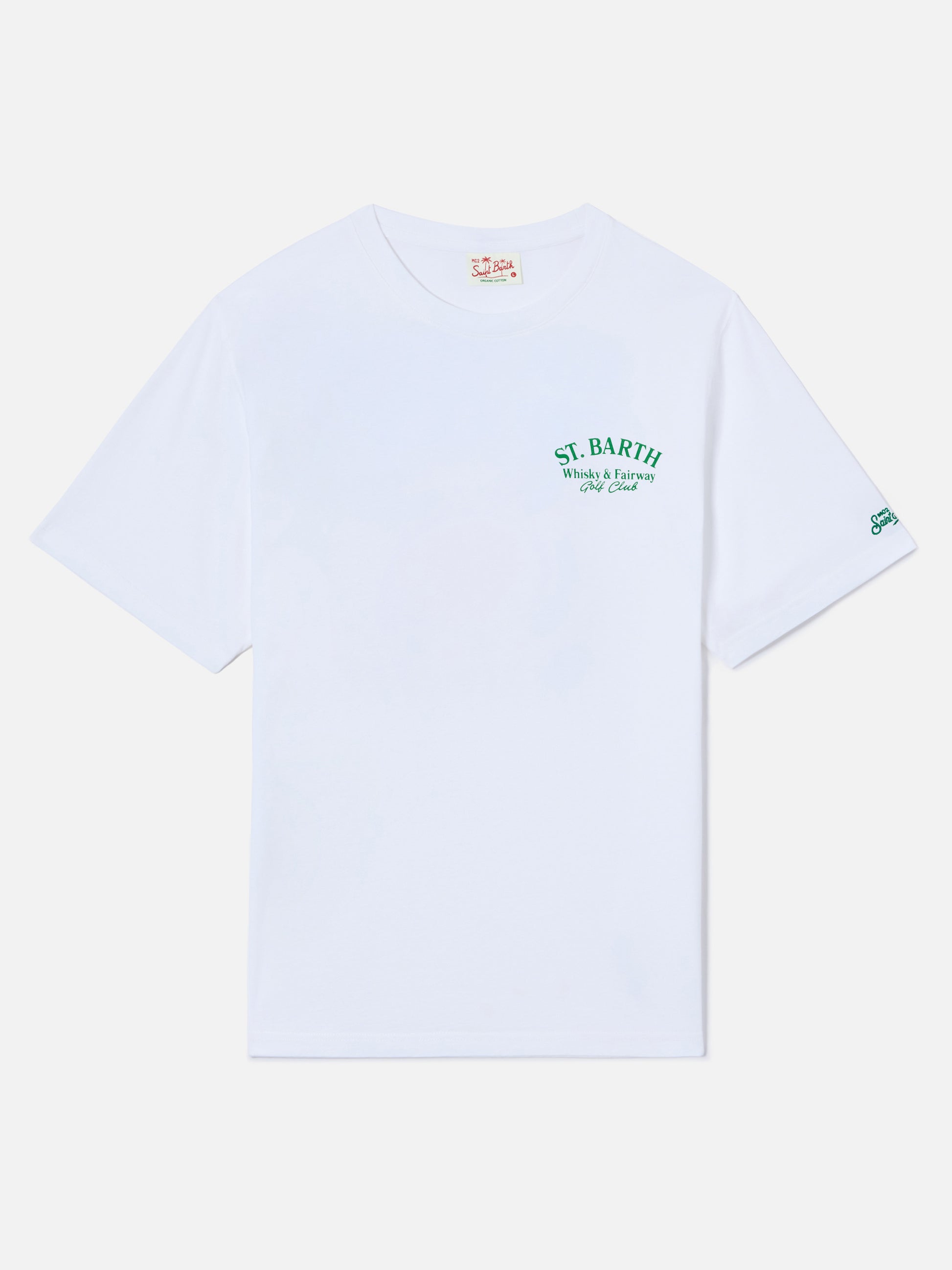 White Portland t-shirt with Whisky & Fairway Golf Club illustration