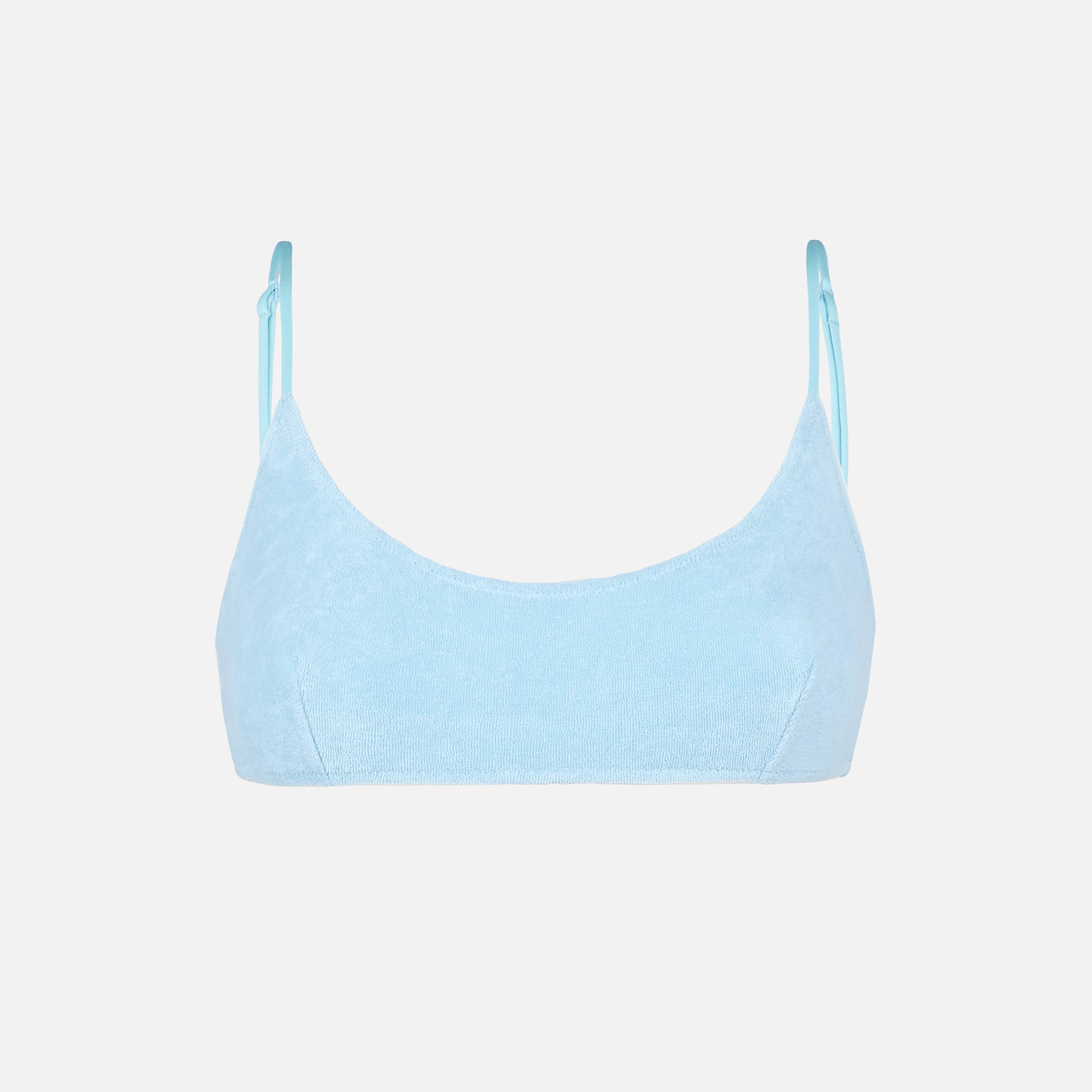 Hellblauer Frottee-Bralette-Badeanzug für Damen