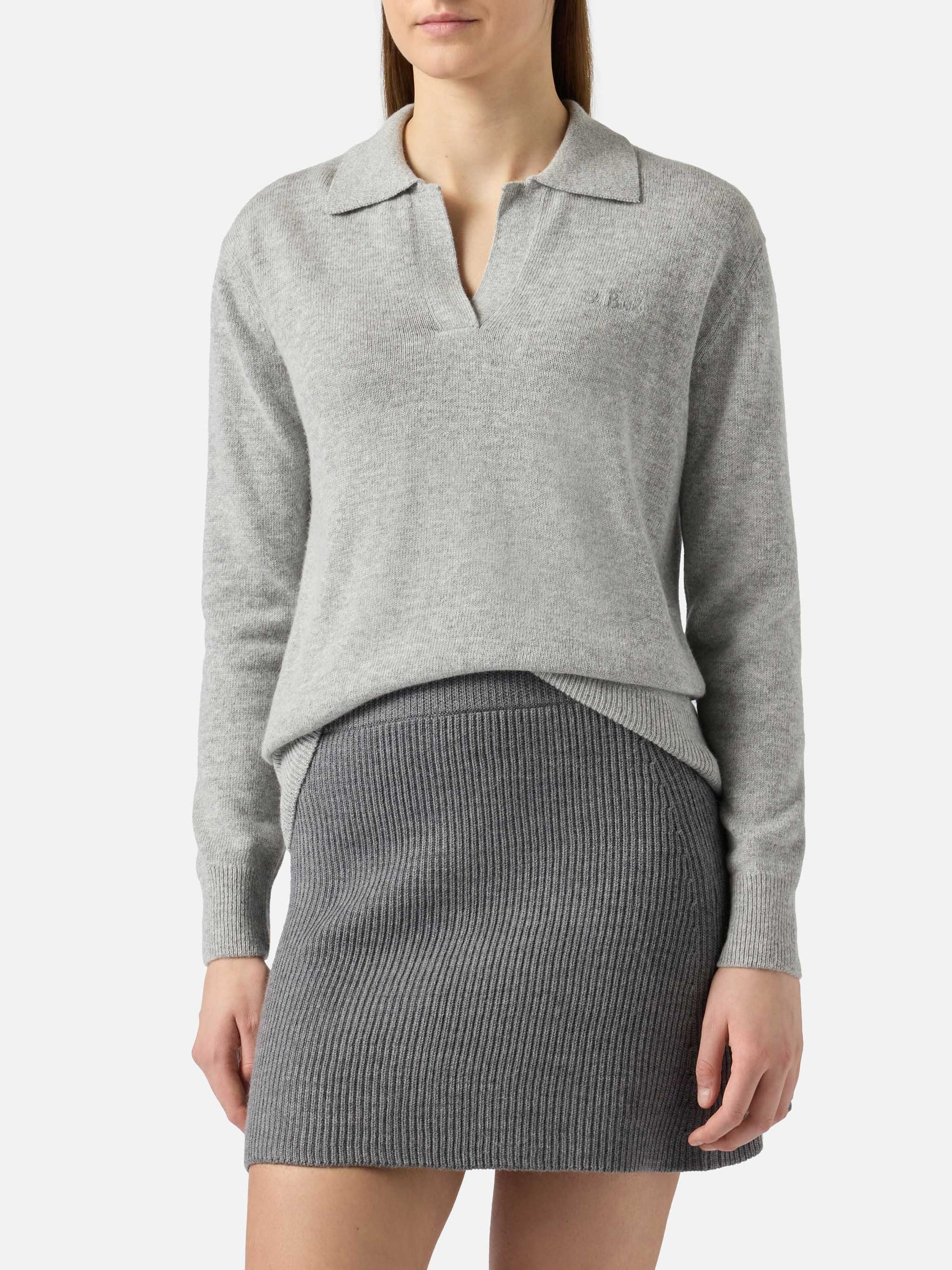 Grauer Melange-Pullover Eze für Damen mit Polokragen