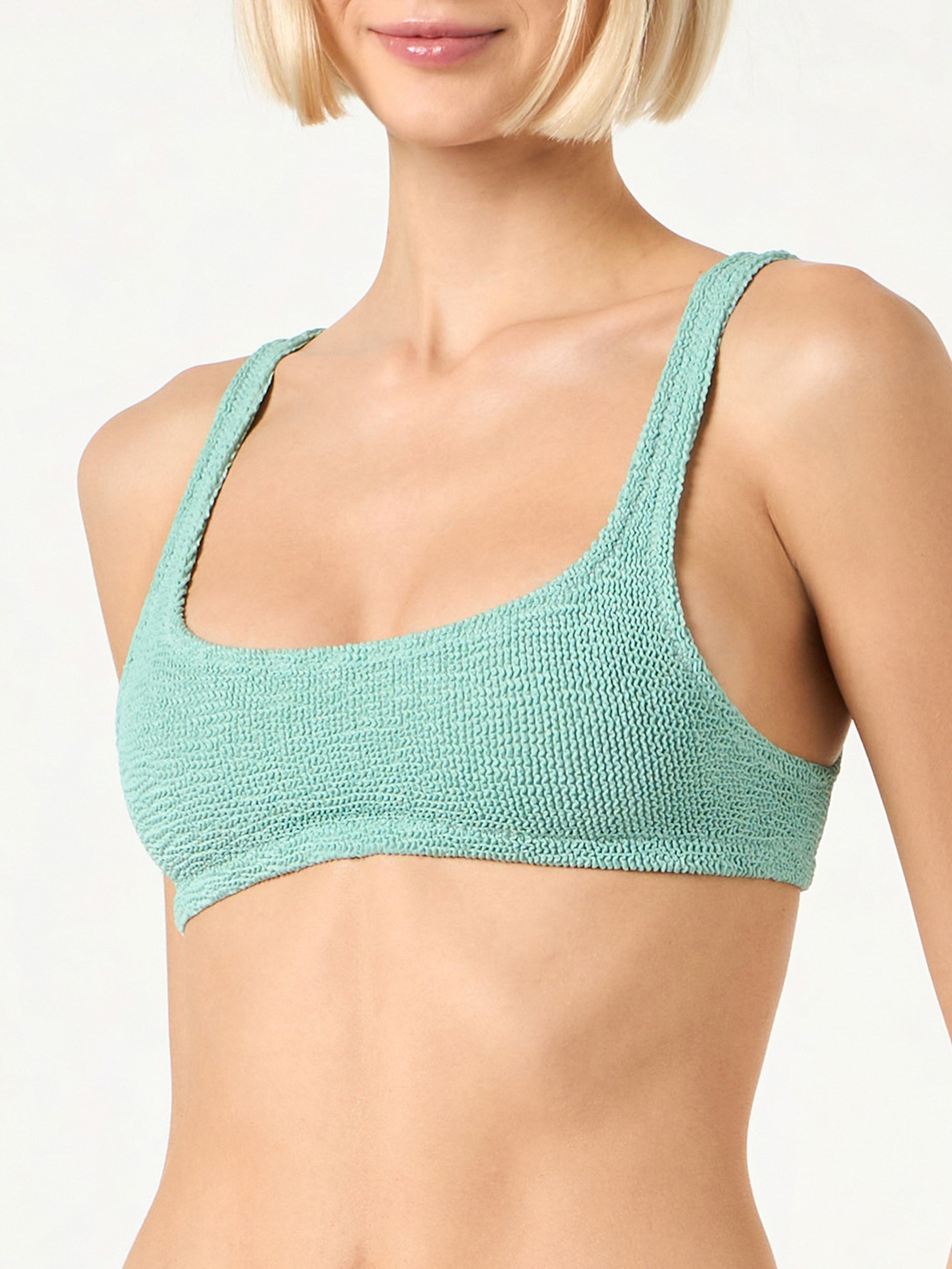 Salbeifarbener Damen-Badeanzug mit Bralette-Oberteil in Crinkle-Optik