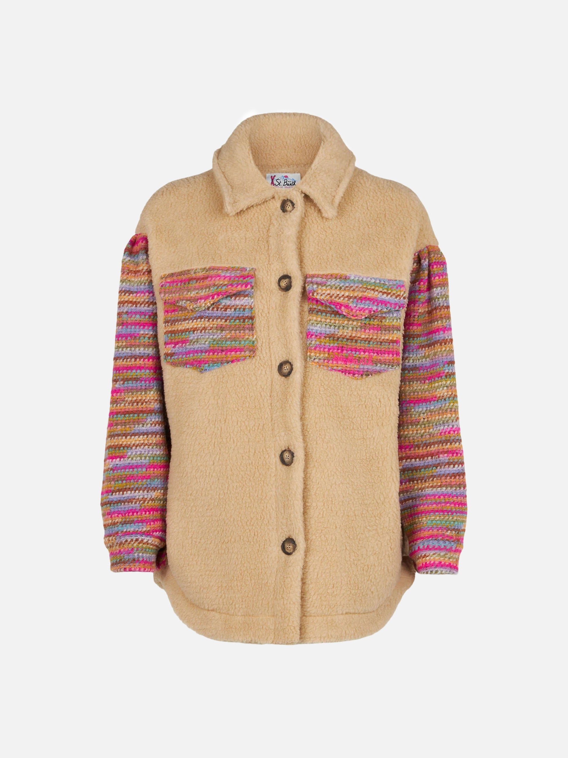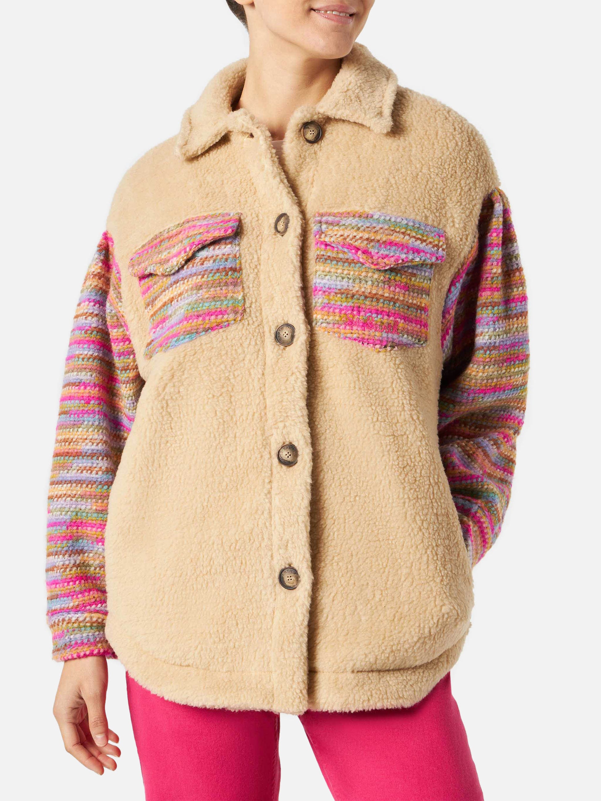 Damen-Sherpa-Overshirt mit Häkeldetails