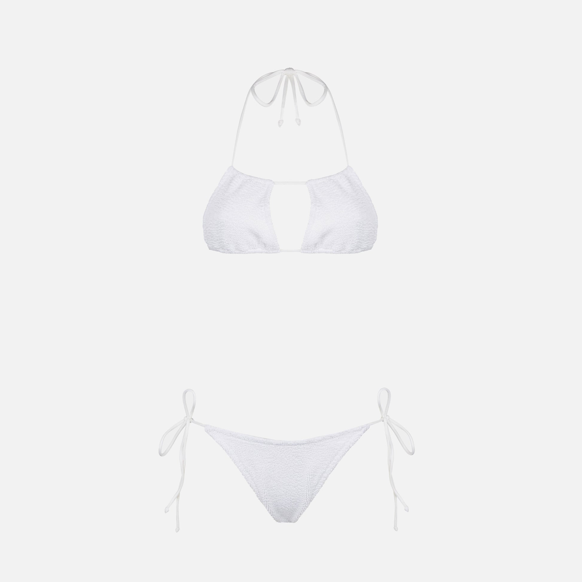 Weißer Crinkle-Bandeau-Bikini für Damen