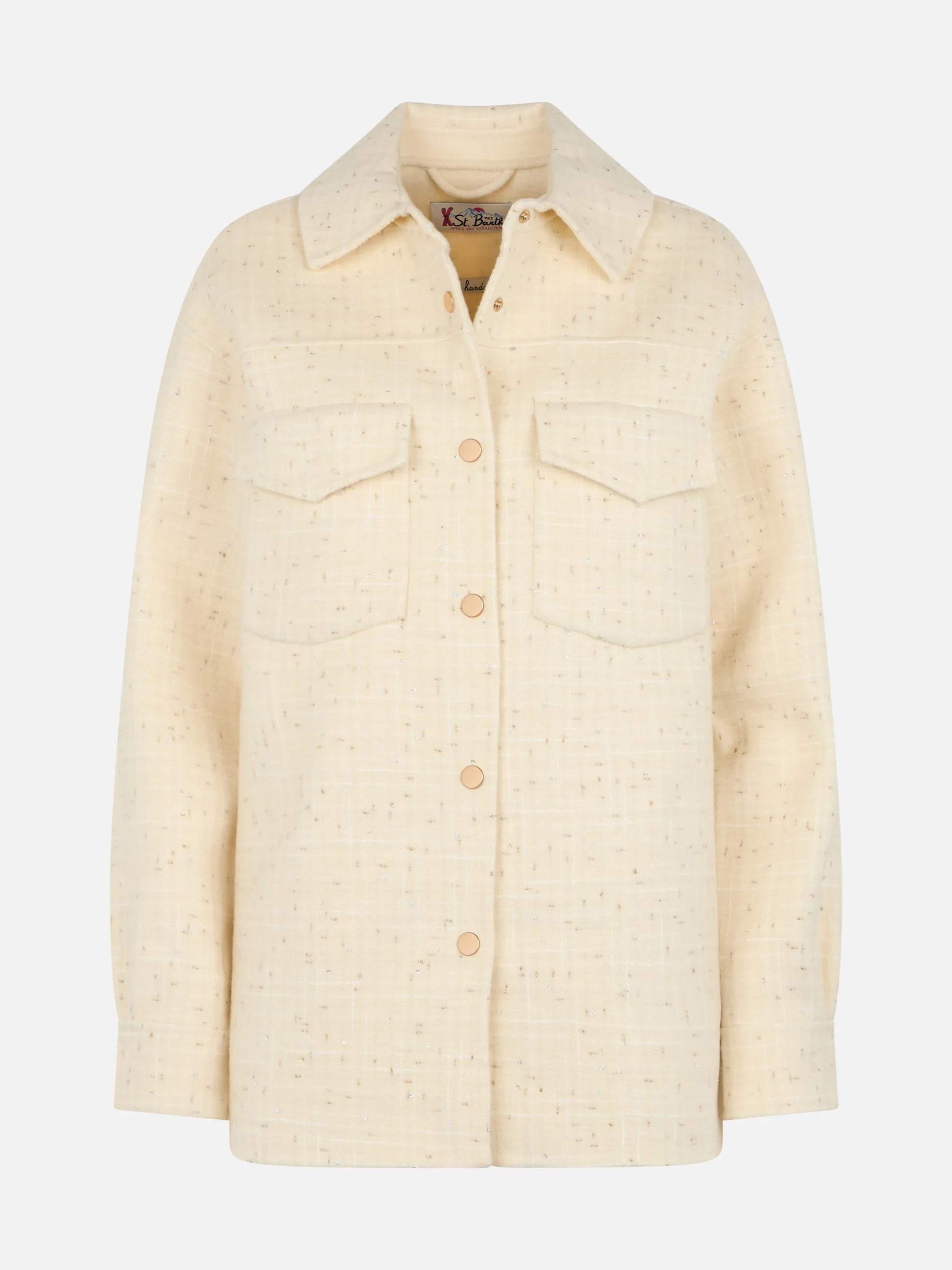 Weiße Woll-Tweedjacke für Damen von Chantel mit Pailletten