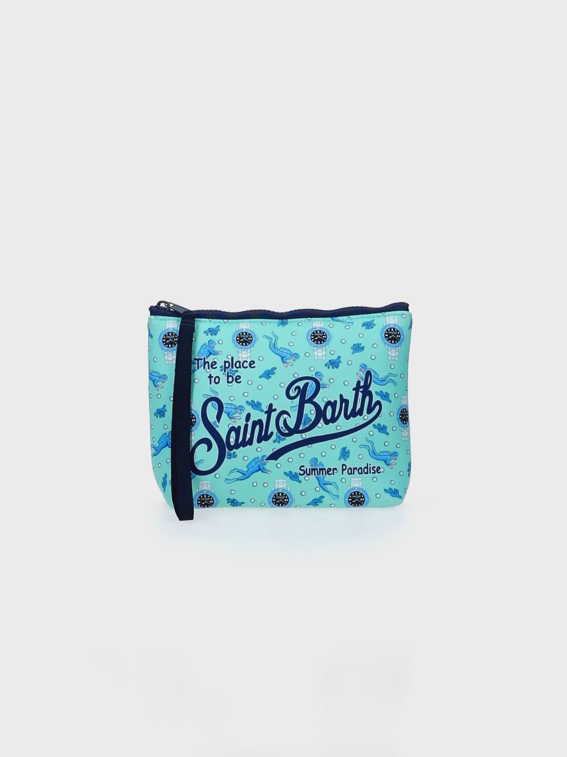Pochette Aline in scuba con stampa orologi e sub