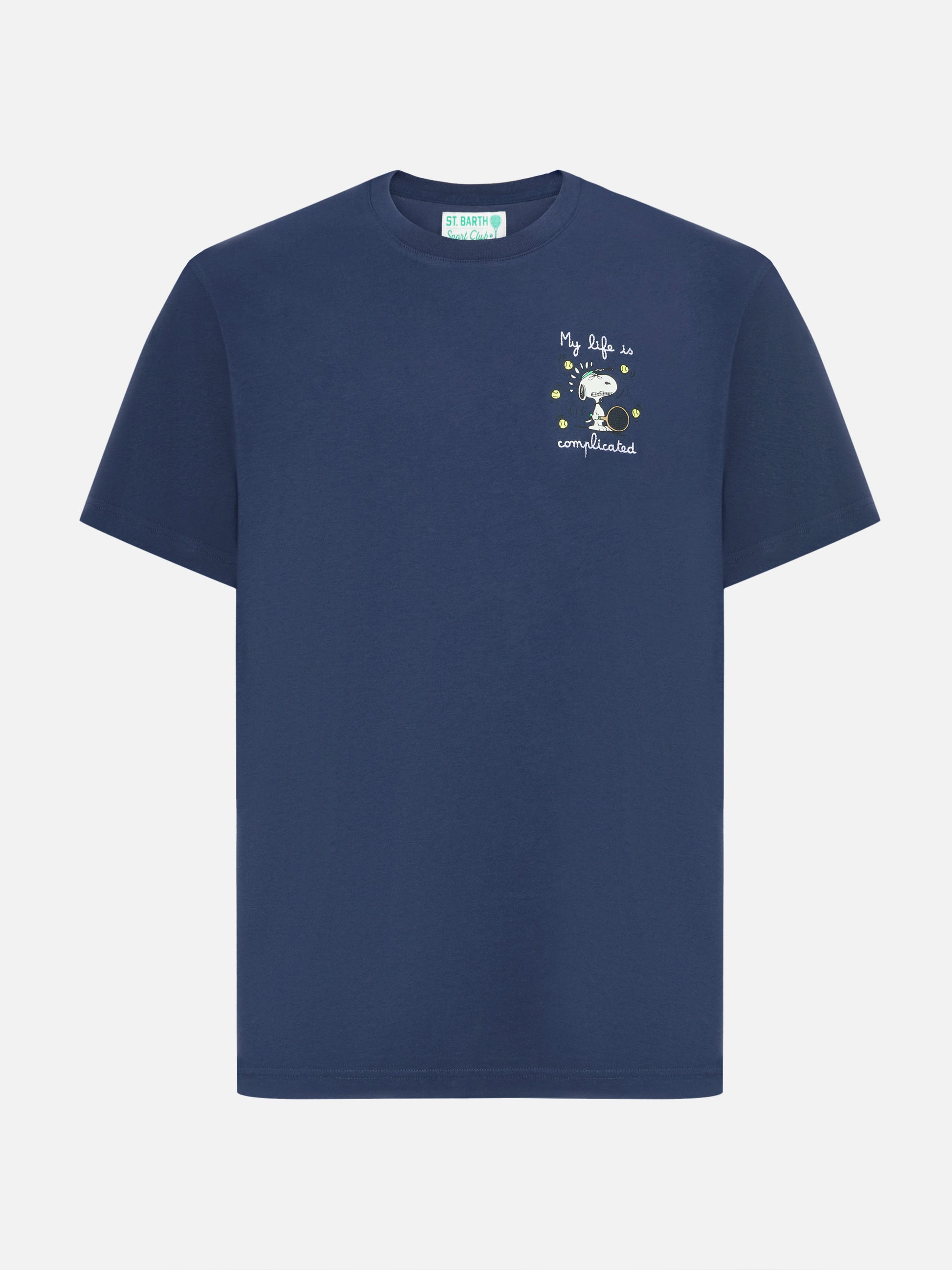 T-shirt Arnott in cotone blu con ricamo Snoopy My life is complicated | PEANUTS SPECIAL EDITION