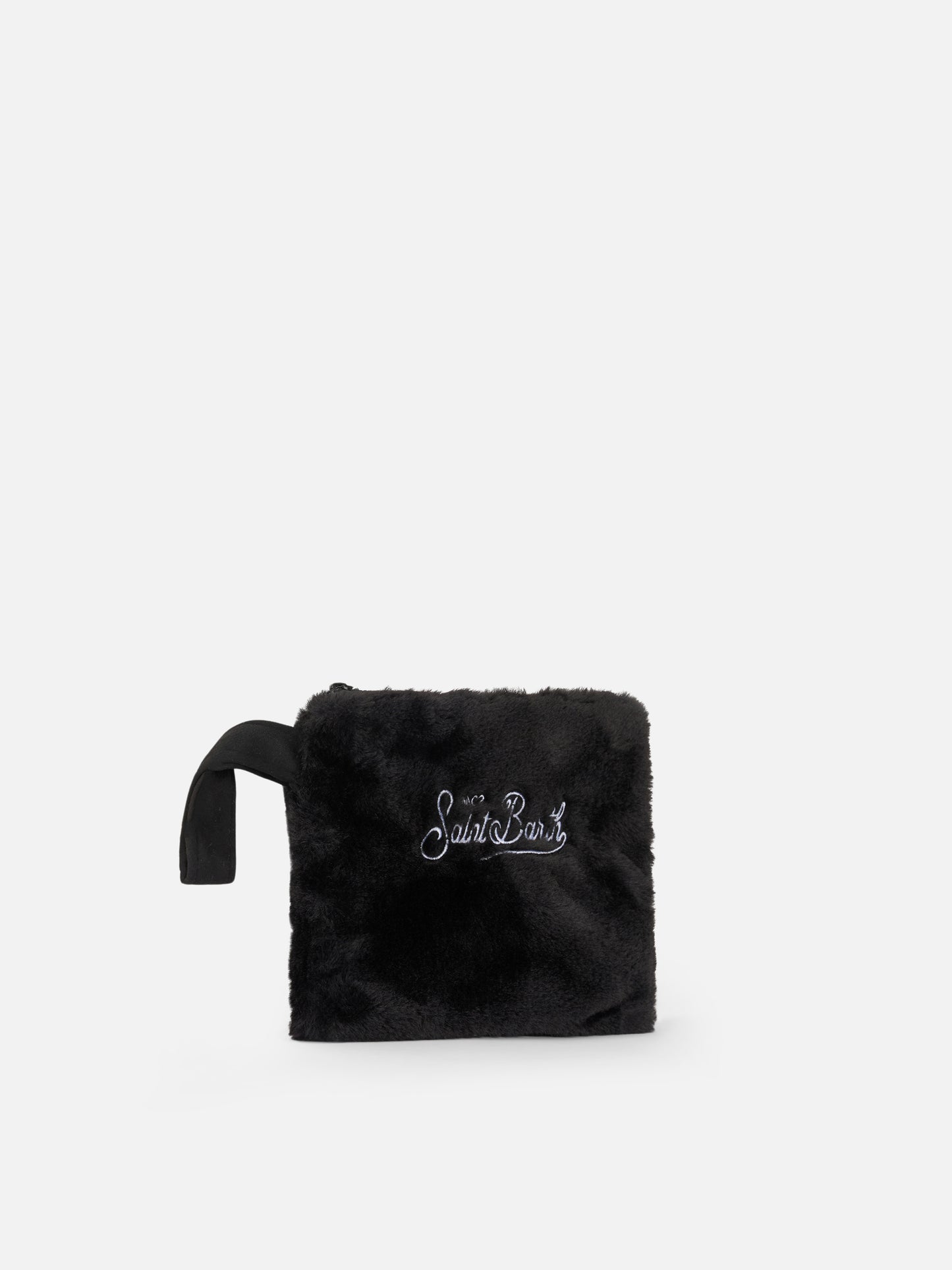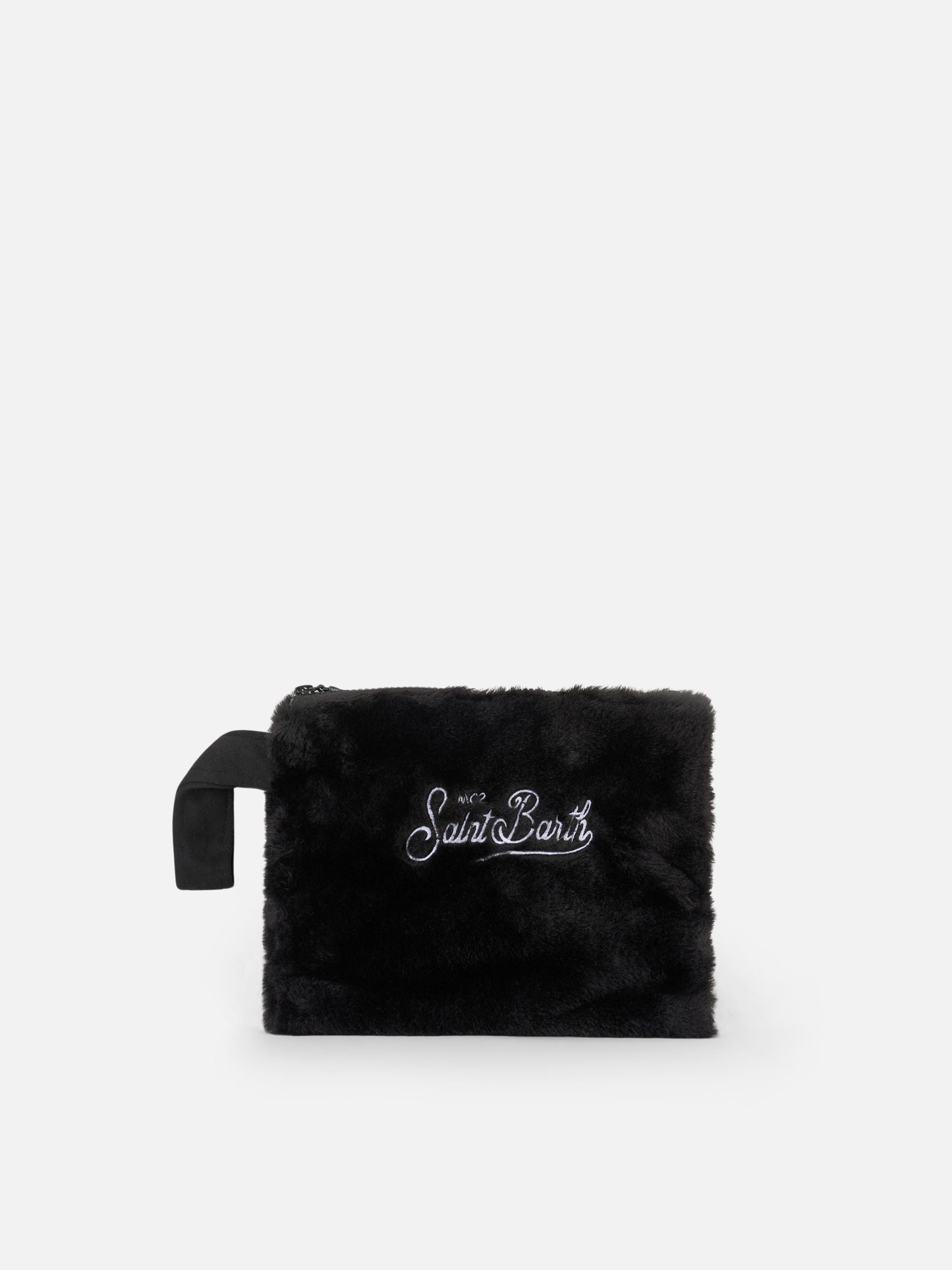 Pochette nera in pelliccia Pareasy con ricamo Saint Barth