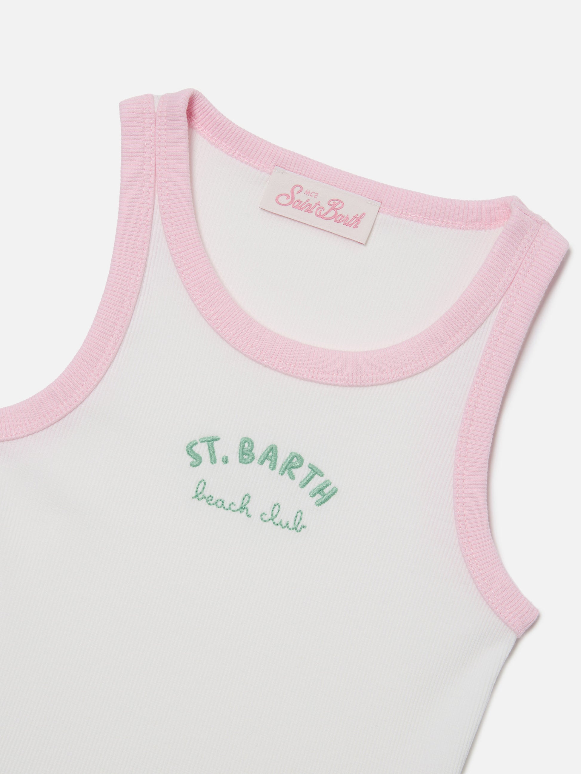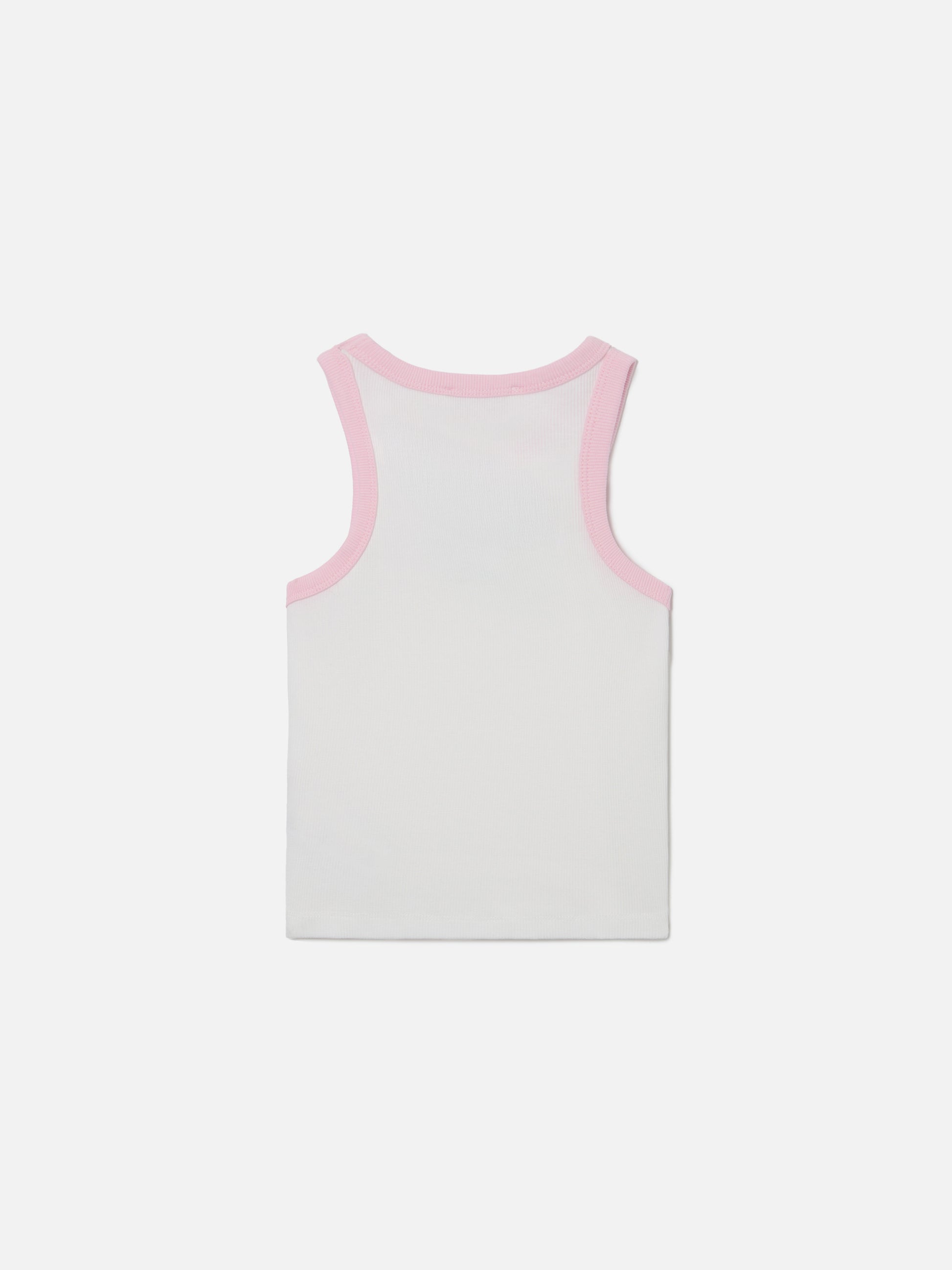 Top Blue Jr bianco con logo ricamato e profili rosa
