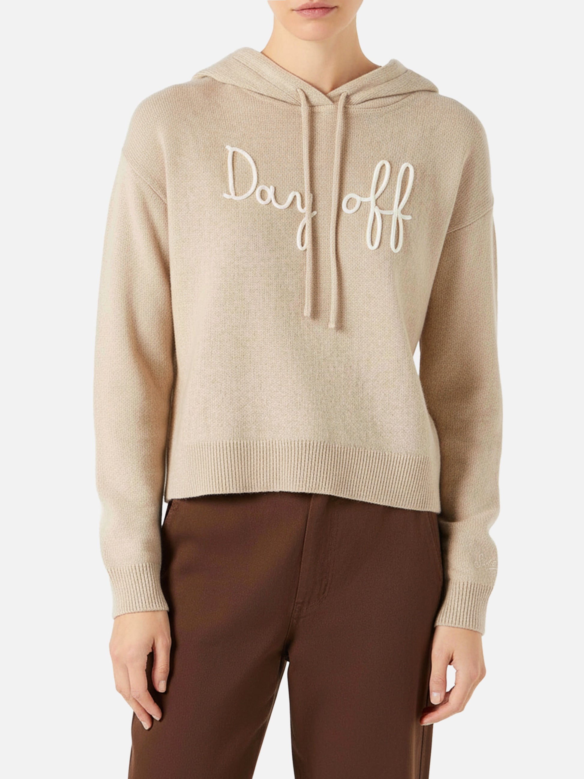 Felpa cropped in maglia da donna con cappuccio e ricamo Day Off