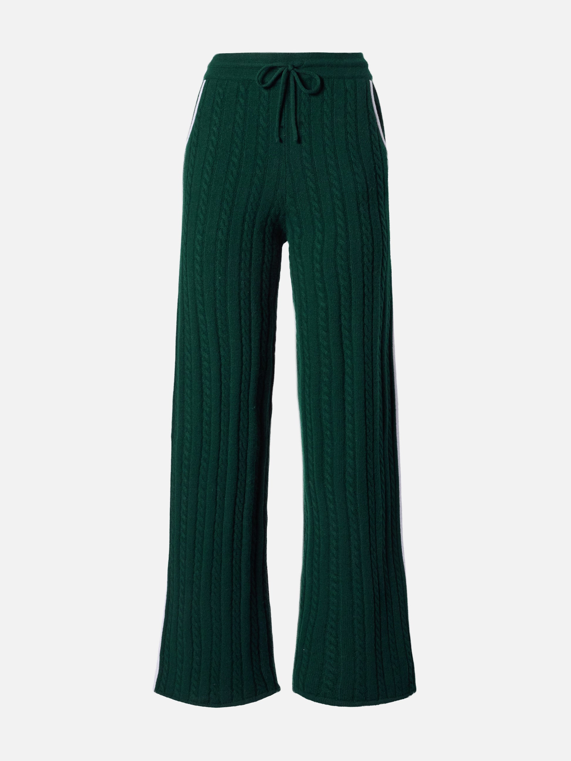 Pantaloni a trecce Dinard in lana verde inglese con ricamo St. Barth