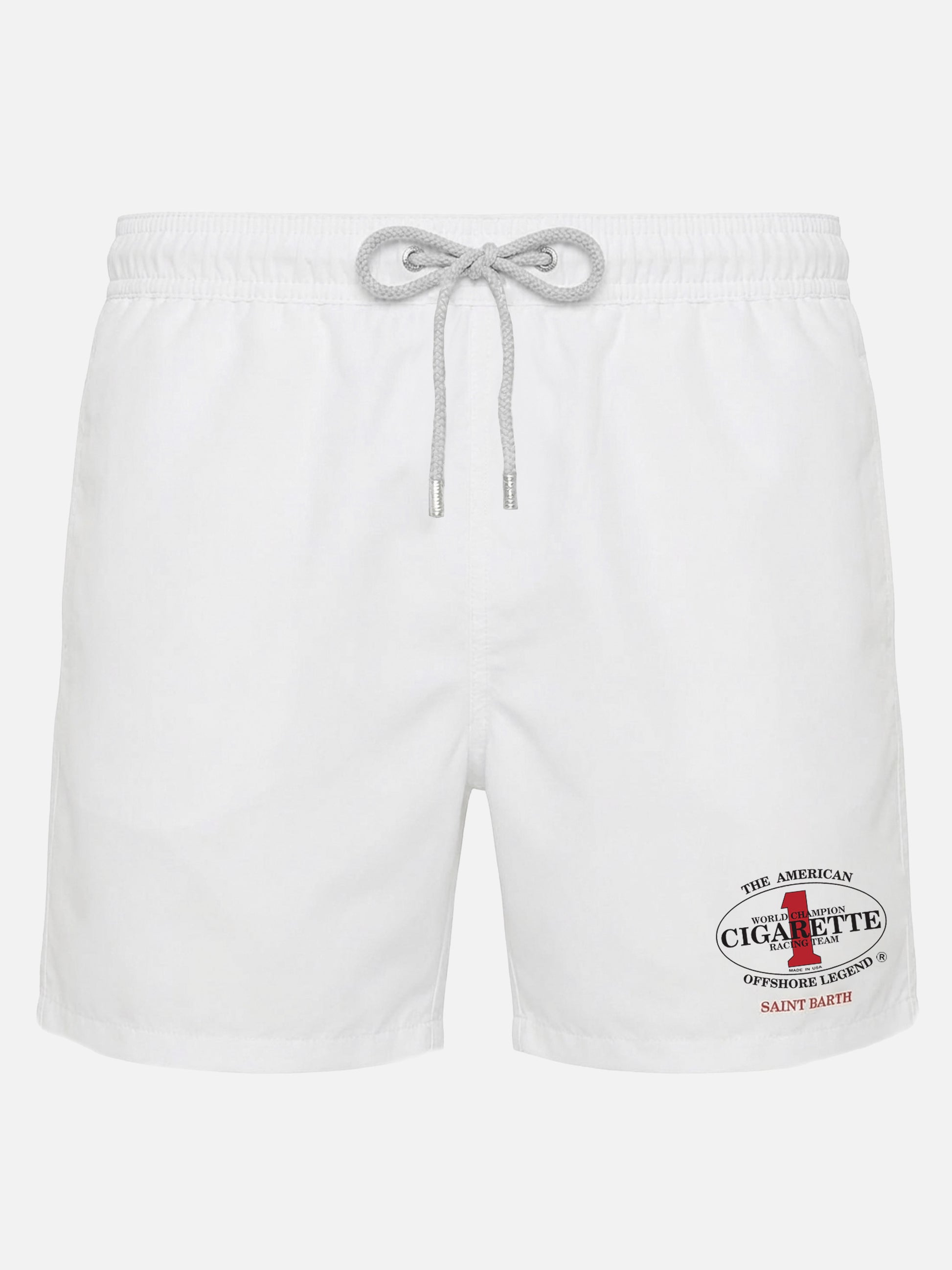 https://it.mc2saintbarth.com/it/products/gustavia-white-swim-shorts-with-cigarette-embroidery-special-edition10773486633306Costume mare Gustavia bianco con ricamo Cigarette | Special edition149,00https:files/UID_GUS000701977L_white-swim-shorts-Cigarette-embroidery_1.jpghttps:files/UID_GUS000701977L_white-swim-shorts-Cigarette-embroidery_1.jpgEUROutOfStockSWIMSHORT650948215130All Products - Only Man649134276954AVADA - Best Sellers672847102298Cigarette673877819738Men Quick Dry Swim Shorts673877918042Men Solid Color Swim Shorts673877360986Men Swim Shorts603371077978Tutti i costumi da bagno288251543736Uomo - Tutti i Costumi da Bagno654689960282UpSelling_Man_SwimshortsIl costume mare Gustavia è realizzato in Edizione speciale con Cigarette. Il modello è realizzato in tessuto leggero elasticizzato ad asciugatura rapida, pensato per offrire comfort e libertà di movimento. Il bianco tinta unita è arricchito dal ricamo Cigarette Racing Team sulla gamba, che caratterizza il design con un dettaglio grafico distintivo. La lunghezza media e la vita elasticizzata con coulisse regolabile assicurano una vestibilità confortevole, mentre la retina interna elasticizzata antibatterica garantisce comfort e traspirabilità. Parte della capsule papà & figlio.